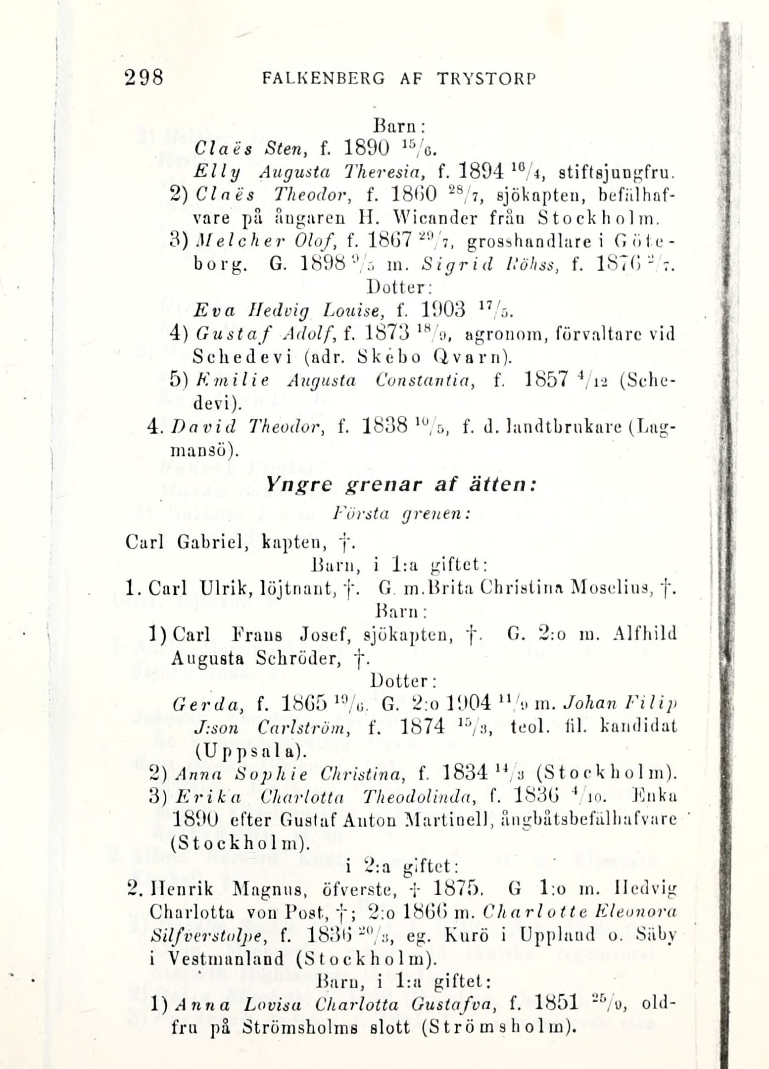 1)Carl Frans Josef, sjökapten, †. G. 2:o 111. Alfhild