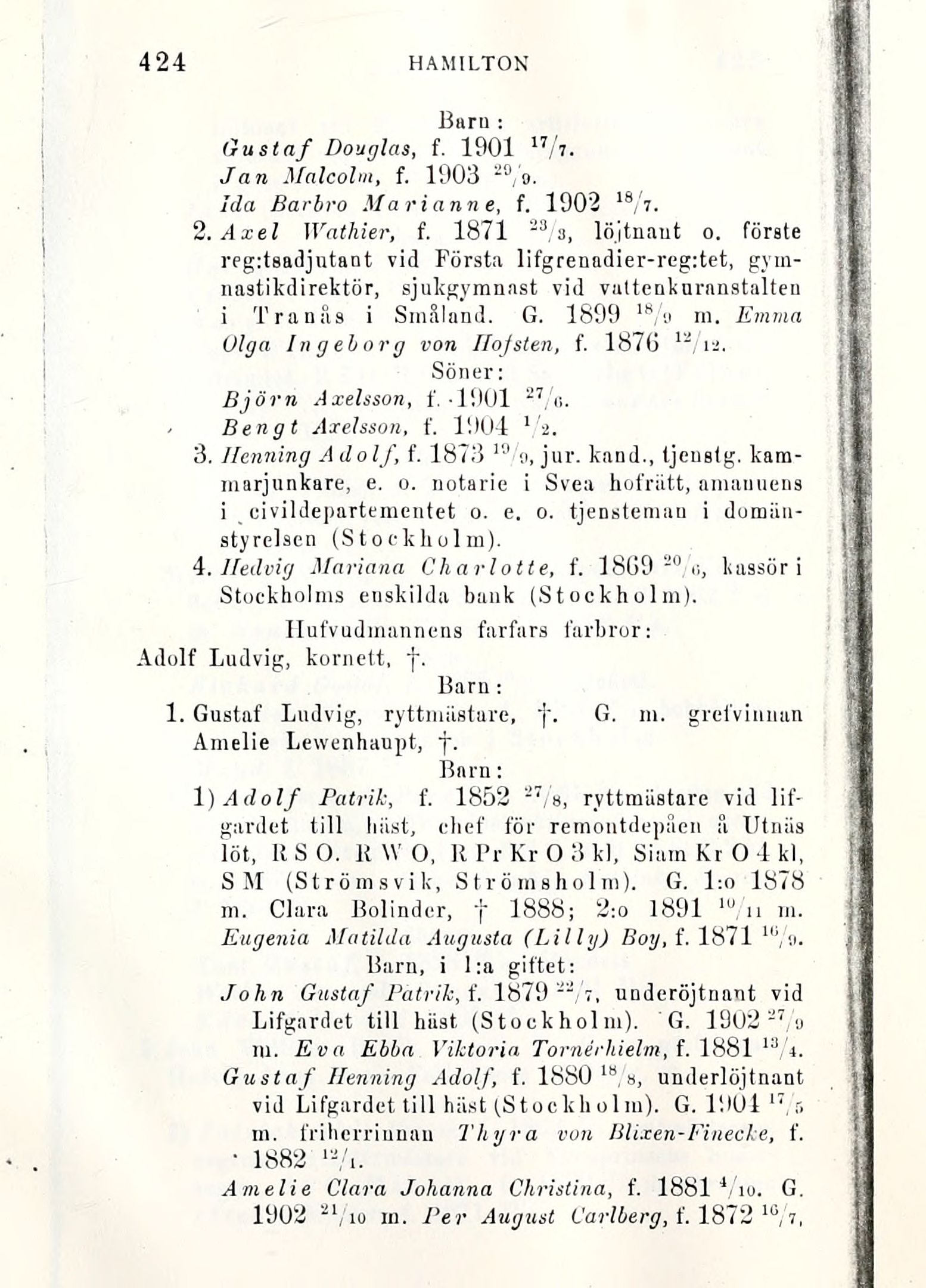 2. Axel IVathier, f. 1871 23/3, löjtnaut o. förste
