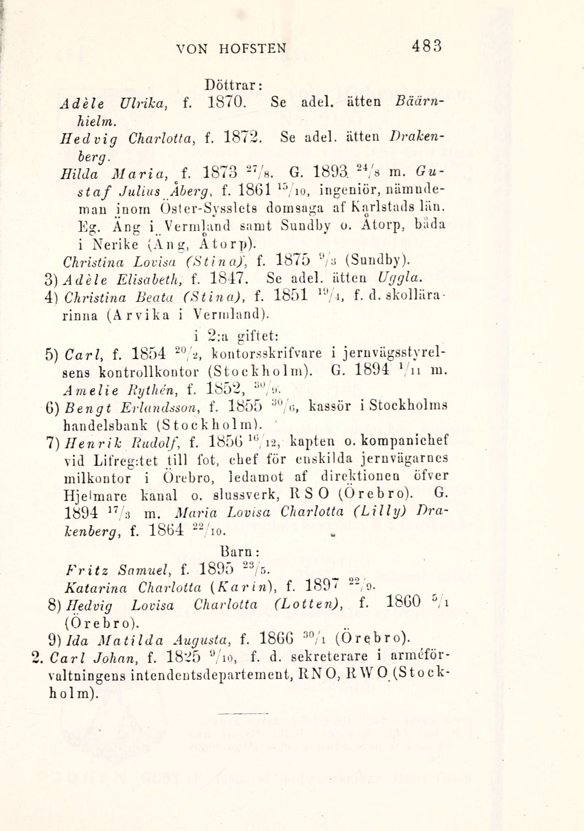 Hedvig Charlotta, f. 1872. Se adel. ätten