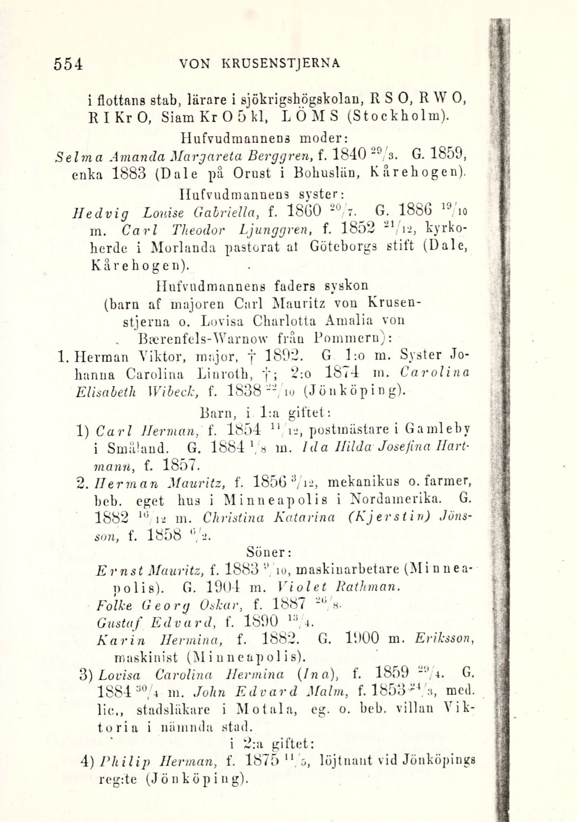I.Herman Viktor, major, † 1892. G l:o m. Syster