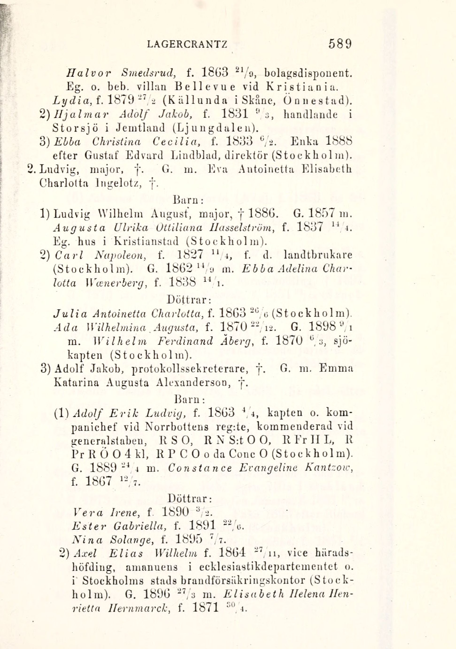 1) Ludvig Wilhelm August, major, † 188G. G. 1857 m.