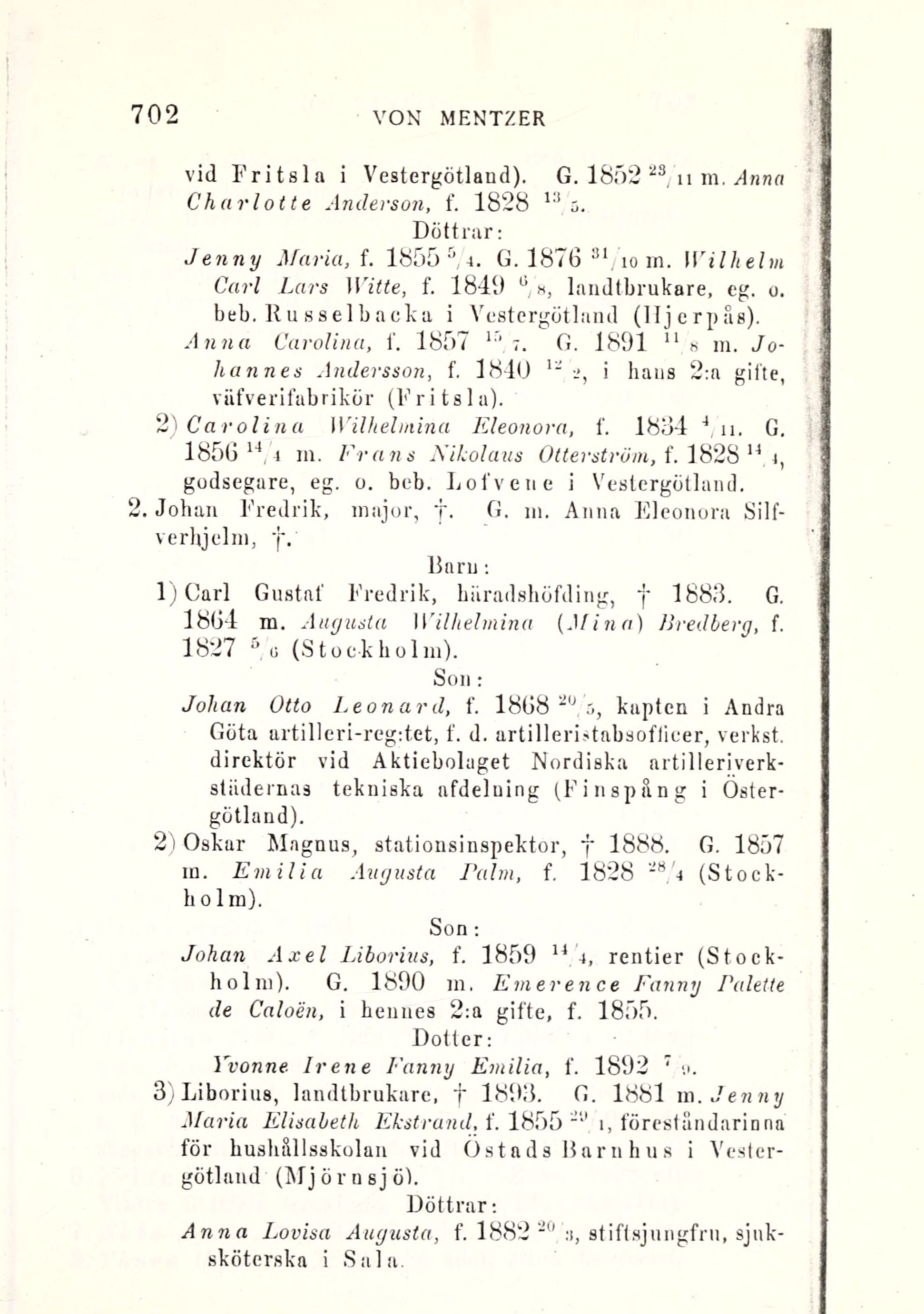 3) Liborius, landtbrukare, † 1893. G. 1881 va. Jenny