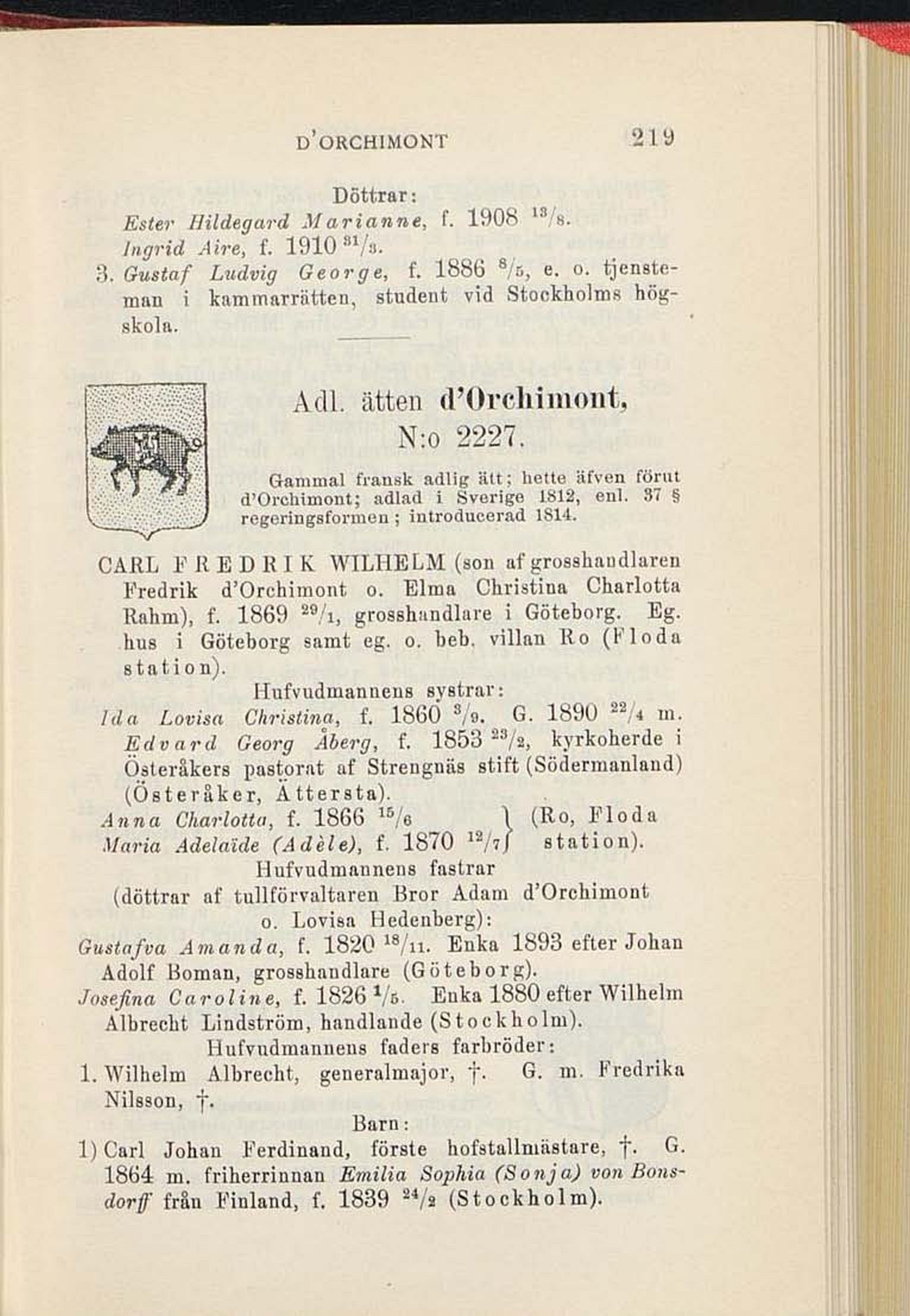 d’Orchimont; adlad i Sverige 1812, enl. 37 §