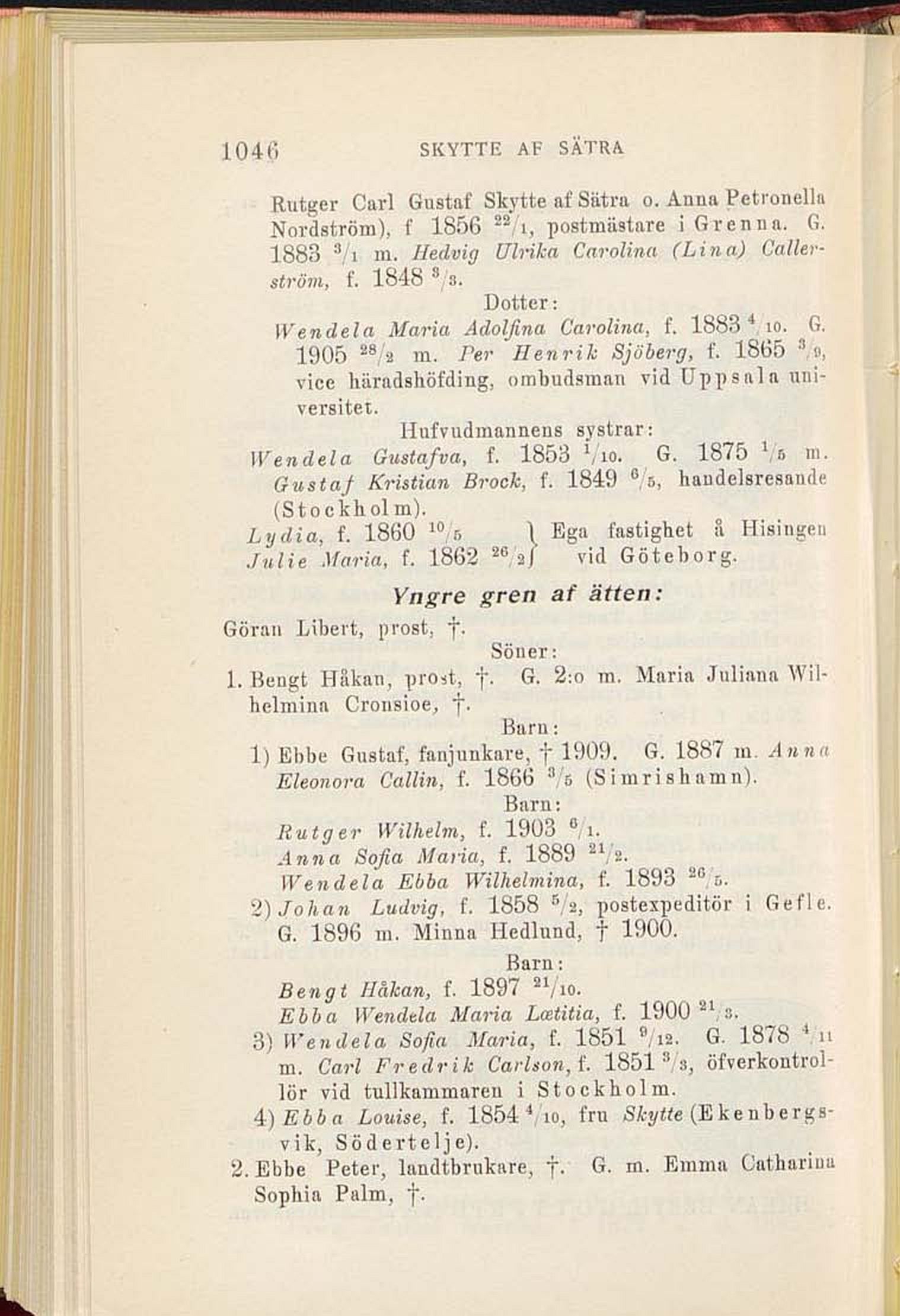 1) Ebbe Gustaf, fanjunkare, † 1909. G. 1887 m Anna