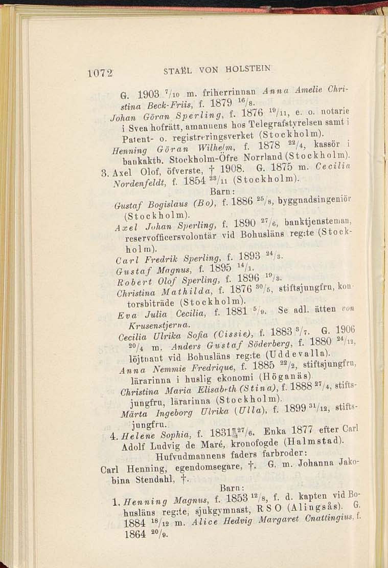 3. Axel Olof, öfverste, † 1908. G. 1875 m. Cecilia