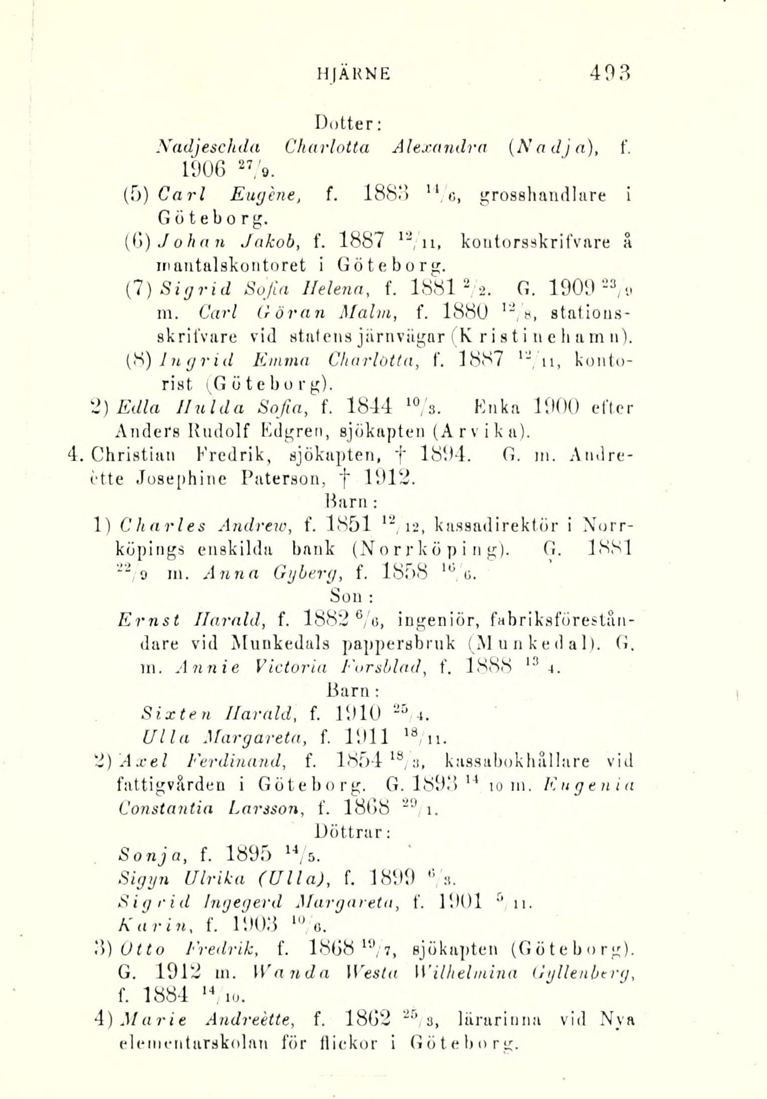 (b) Carl Eugene, f. 1883 " c, grosshandlare i
