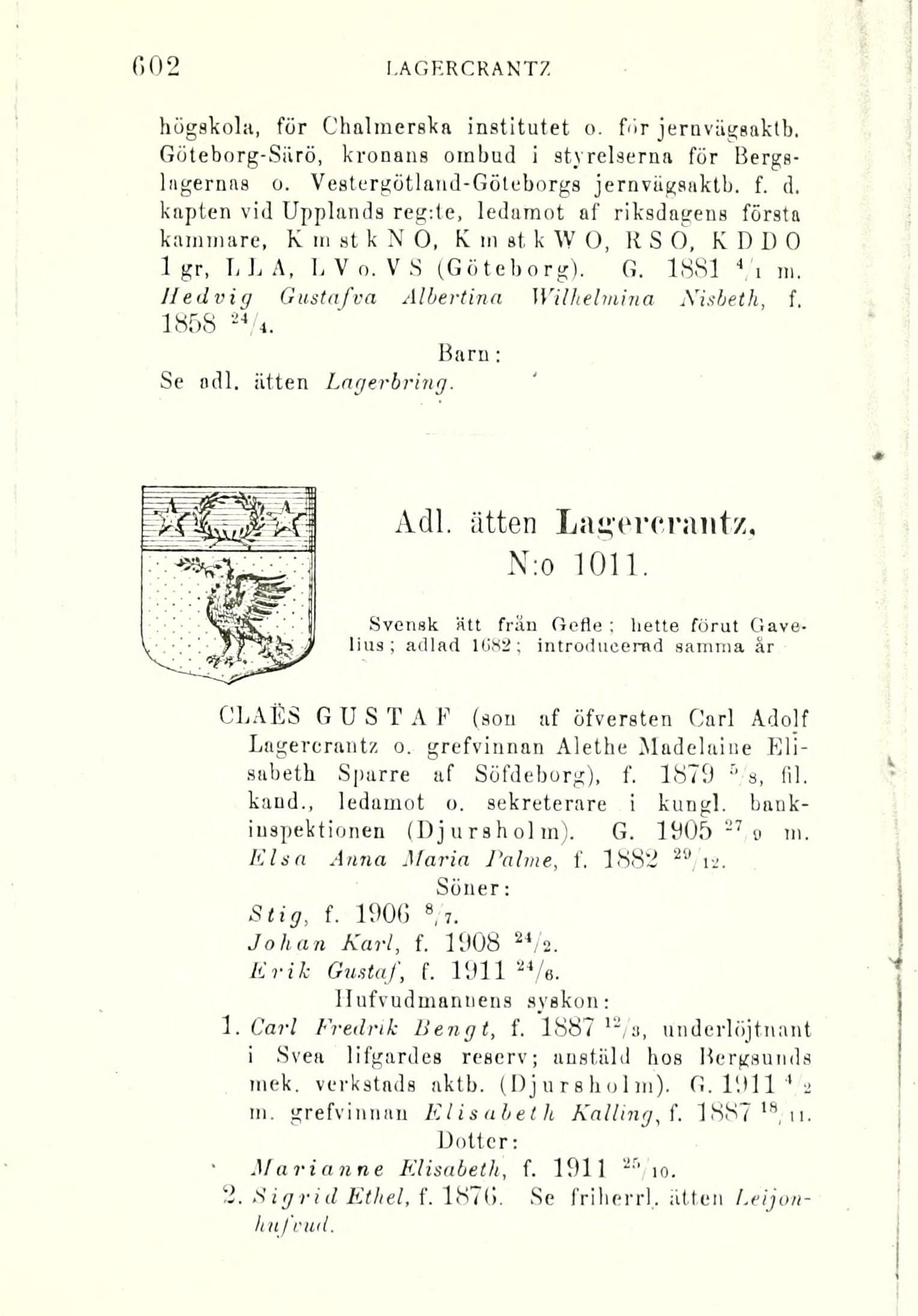 CLAËS G U S T A F (son uf öfversten Carl Adolf