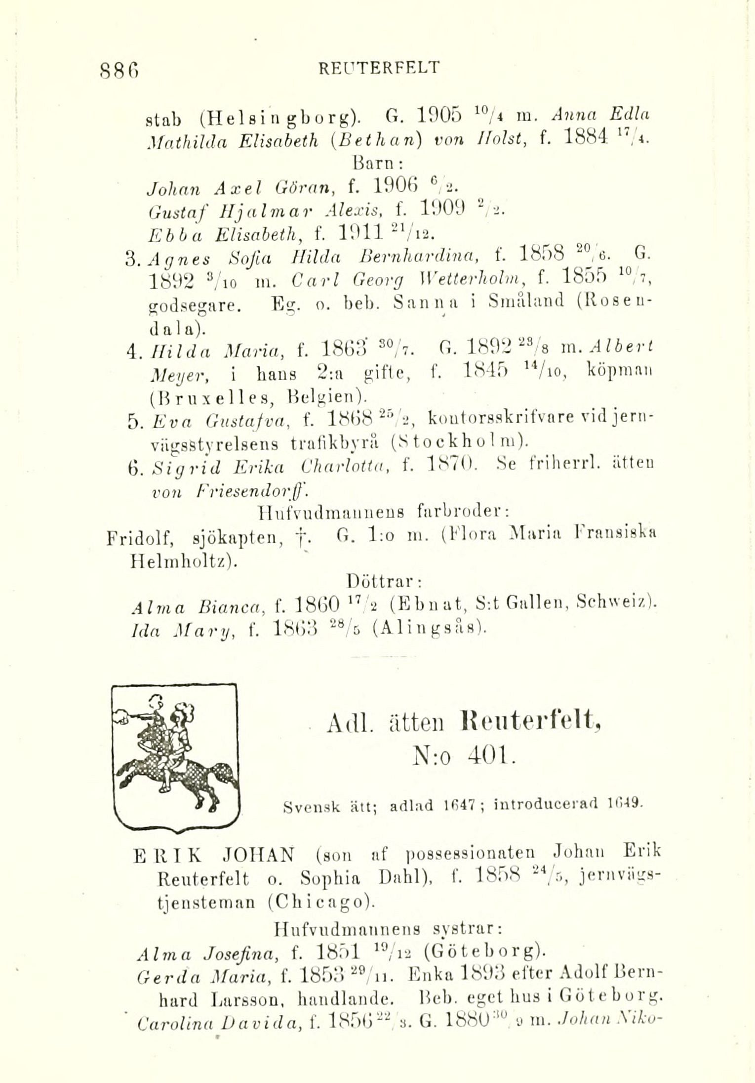 6. Sigrid Erika Charlotta, f. 1870. Se friherrl. ätten
