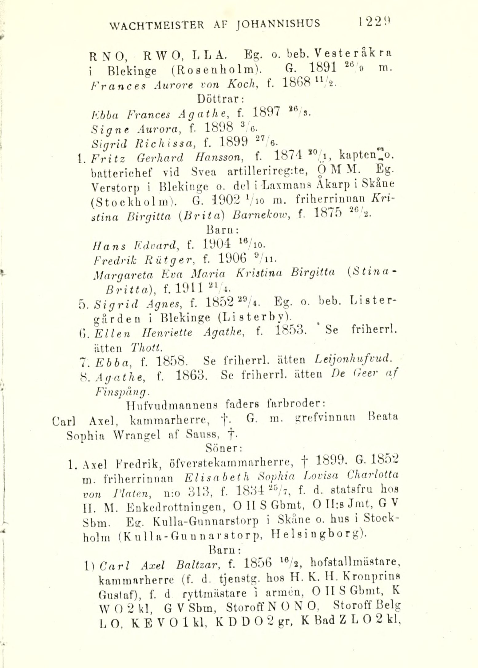 WACHTMEISTER AF JOHANNISHUS 1 23 1