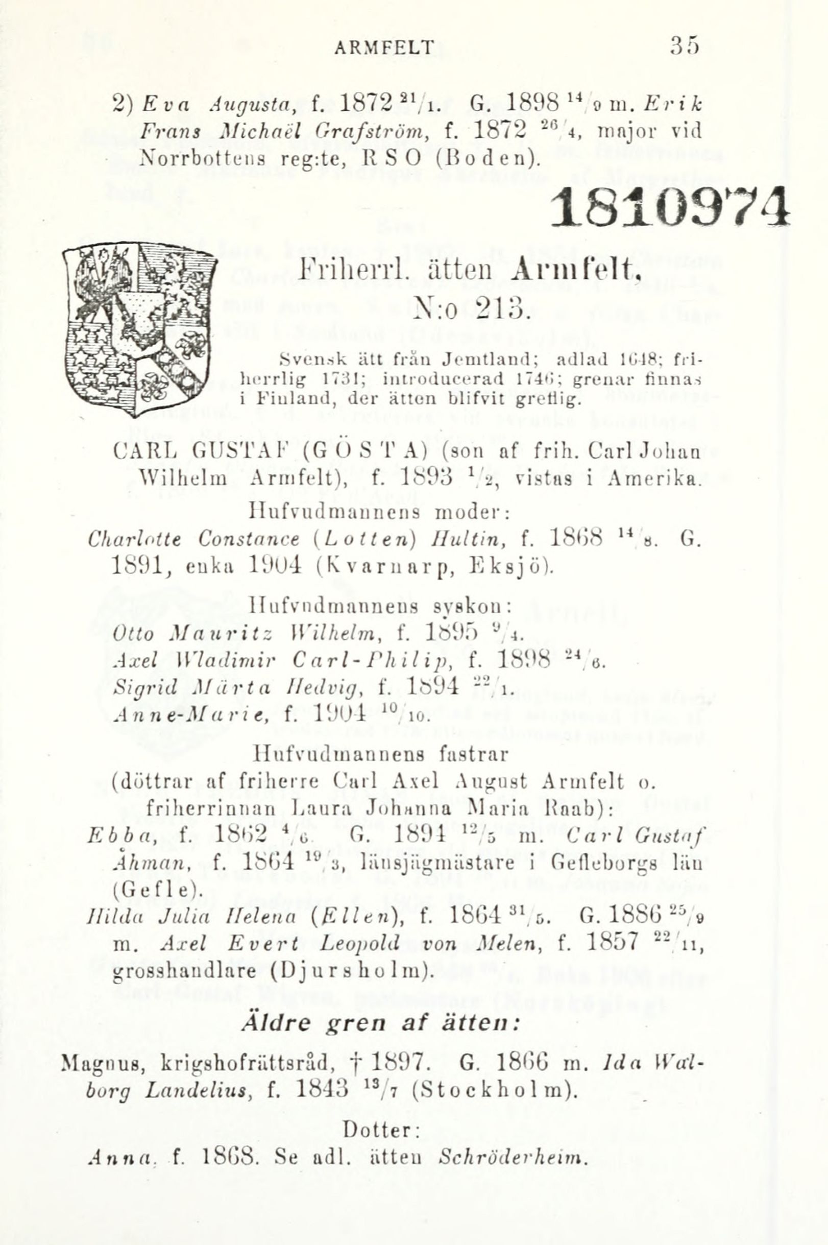 Wilhelm Armfelt), f. 1593 !/3 vistas i Amerika.