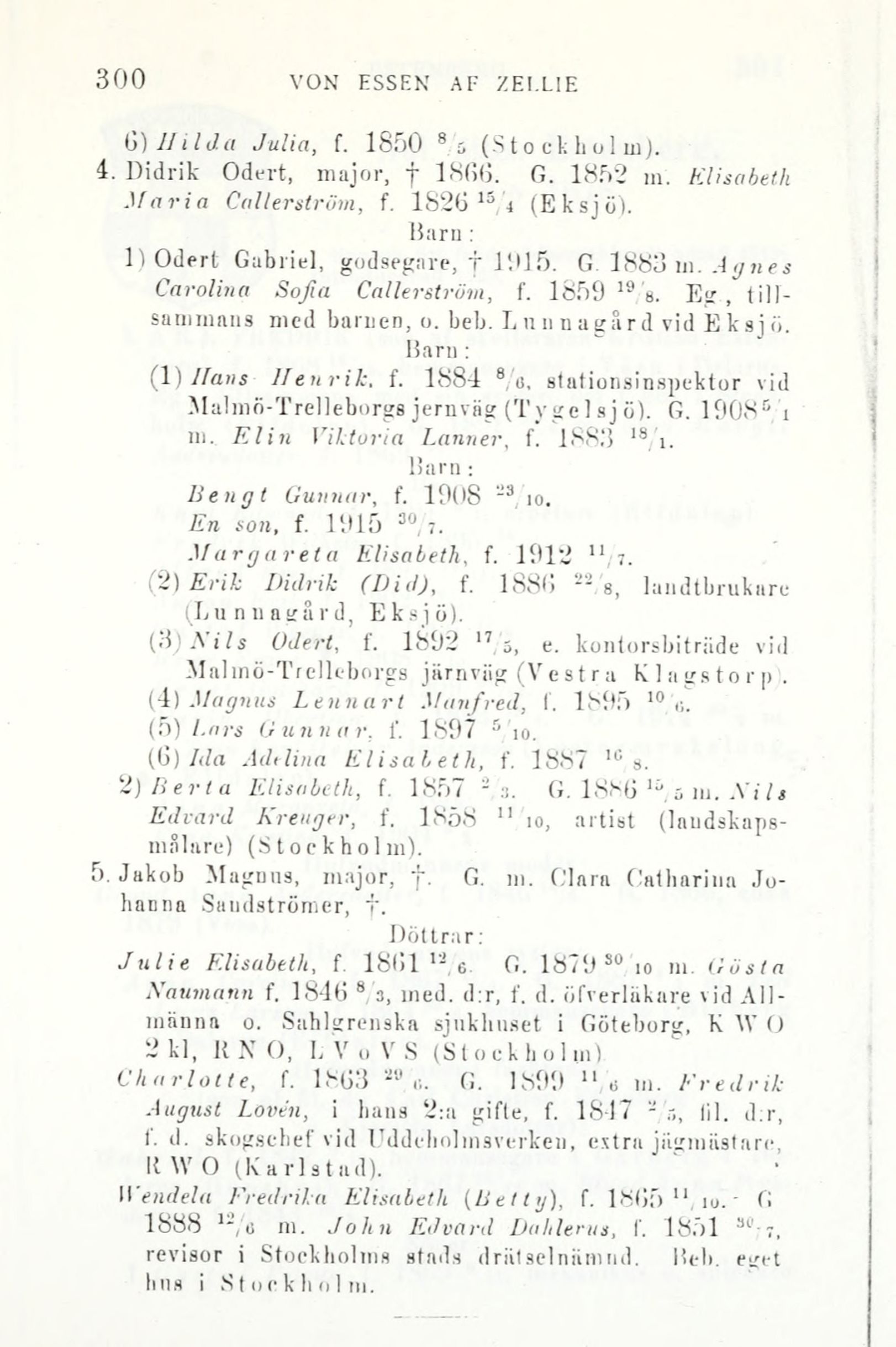 4; Didrik "Odert, major, + 1866. G. 1852 m. Elisabeth