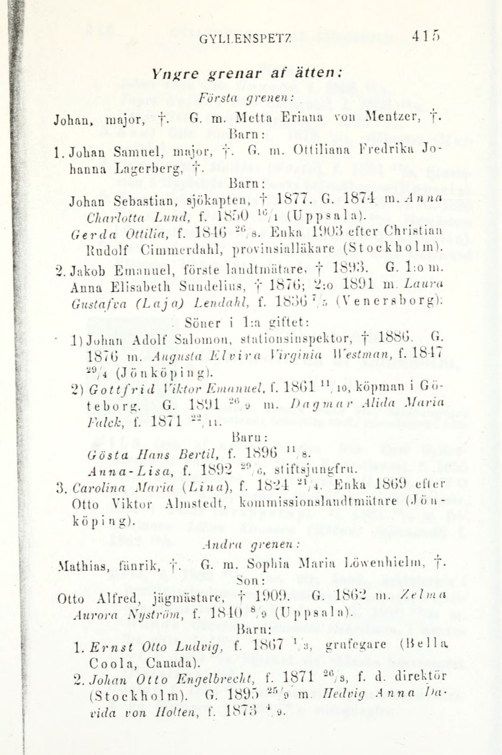 Johan, -major, Tf. G. m. Metta Eriana von Mentzer, T.