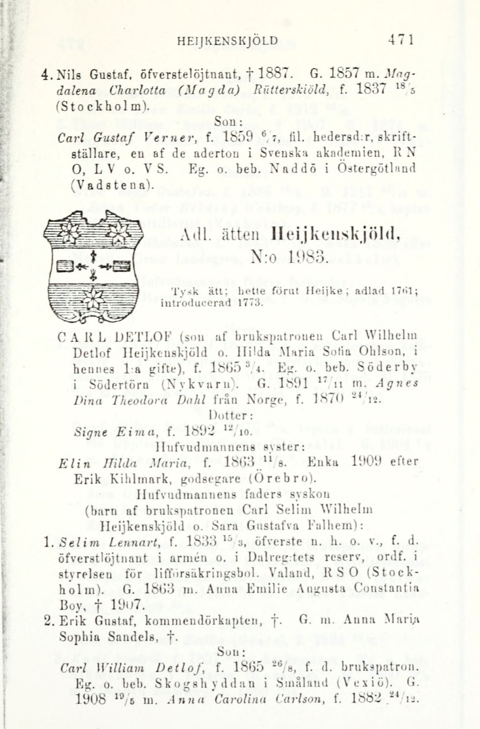 4. Nils Gustaf, öfverstelöjtnant, t 1887. G. 1857 m. Iag-