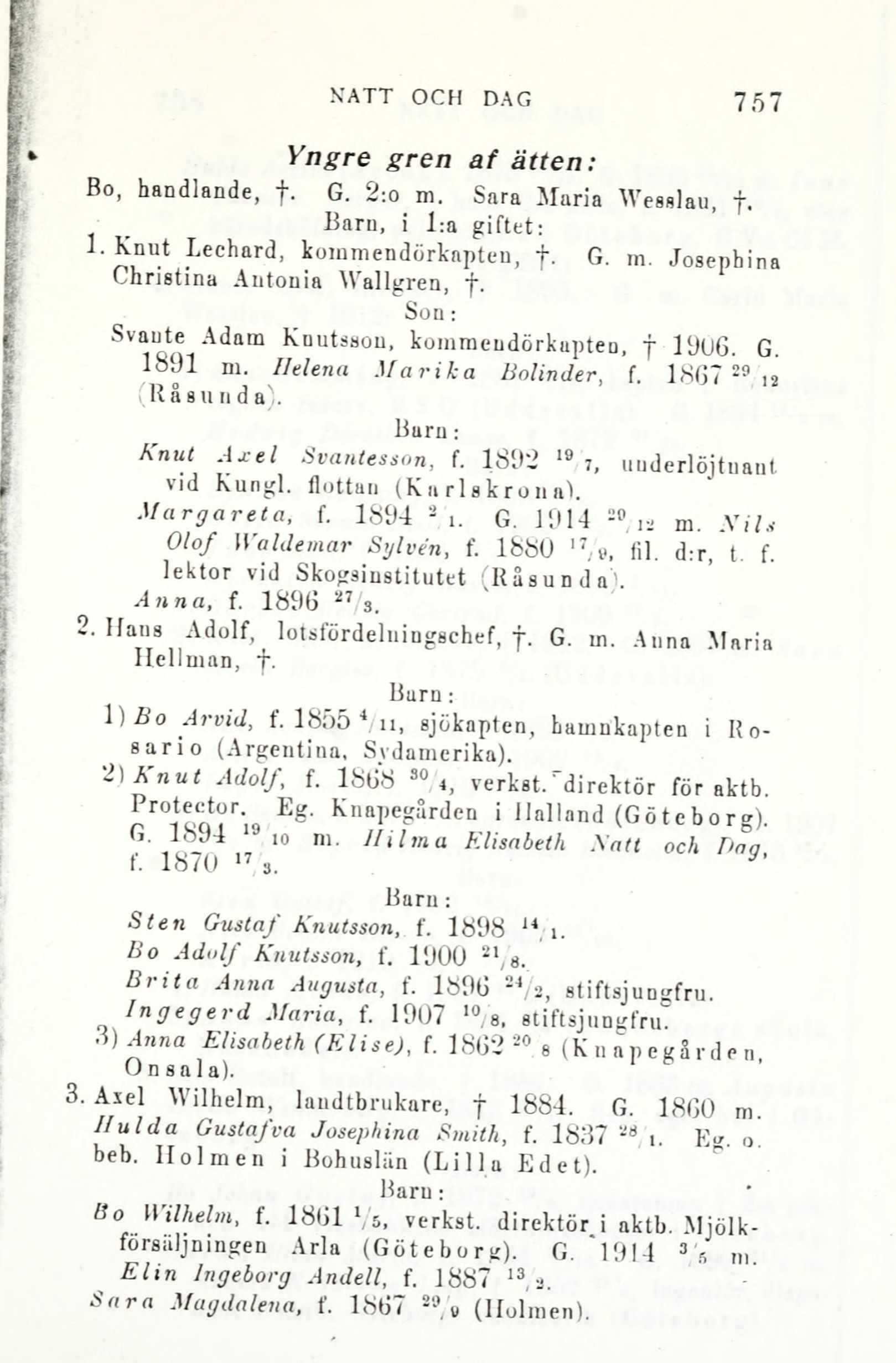 1. Knut Lechard, kommendörkapten, +. G. m. Josephina