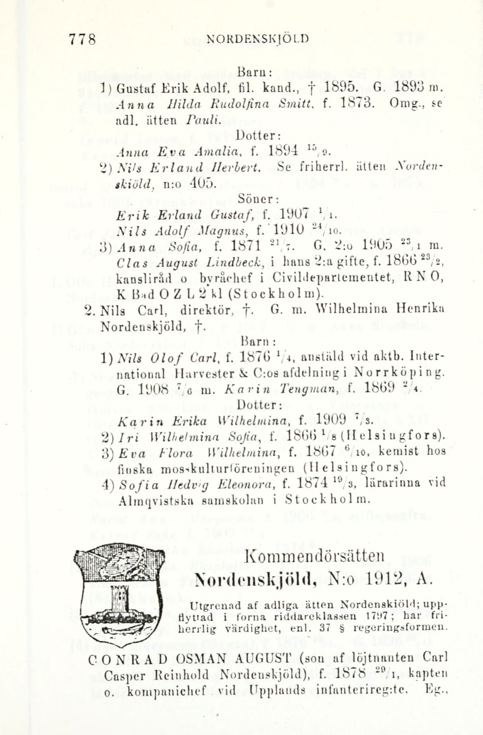 Utgrenad af adliga ätten Nordenskiöld; upp: