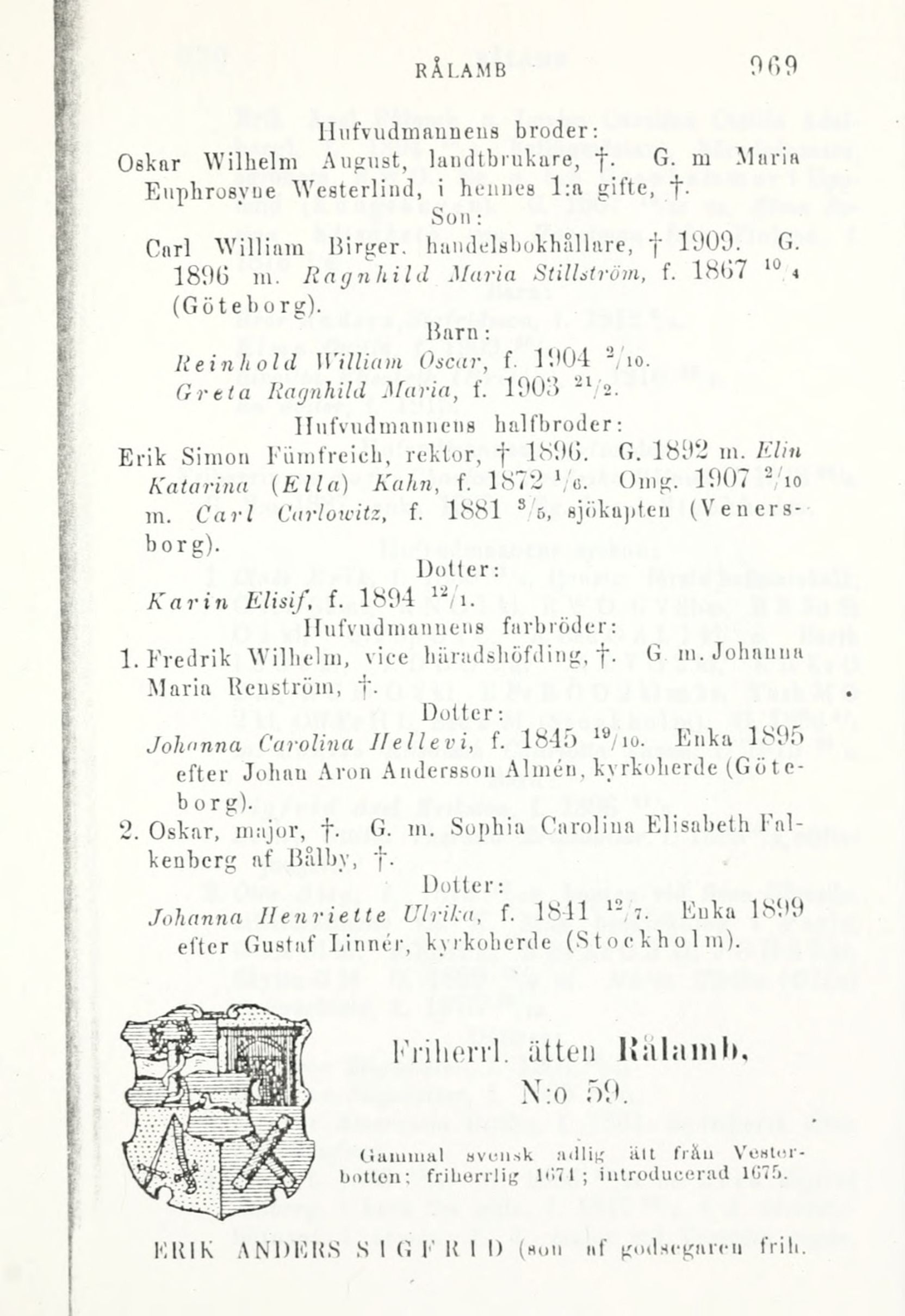 2. Oskar, major, T. G. m. Sophia Carolina Elisabeth Fal-
