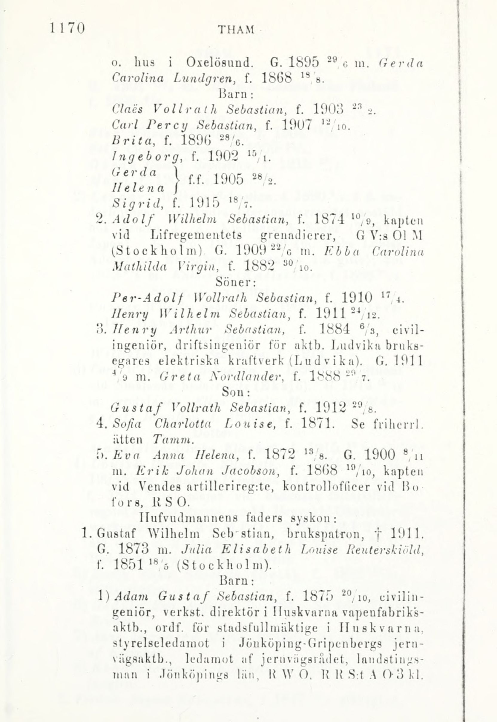 2. Adolf Wilhelm Sebastian, f. 1874 !0/9, kapten