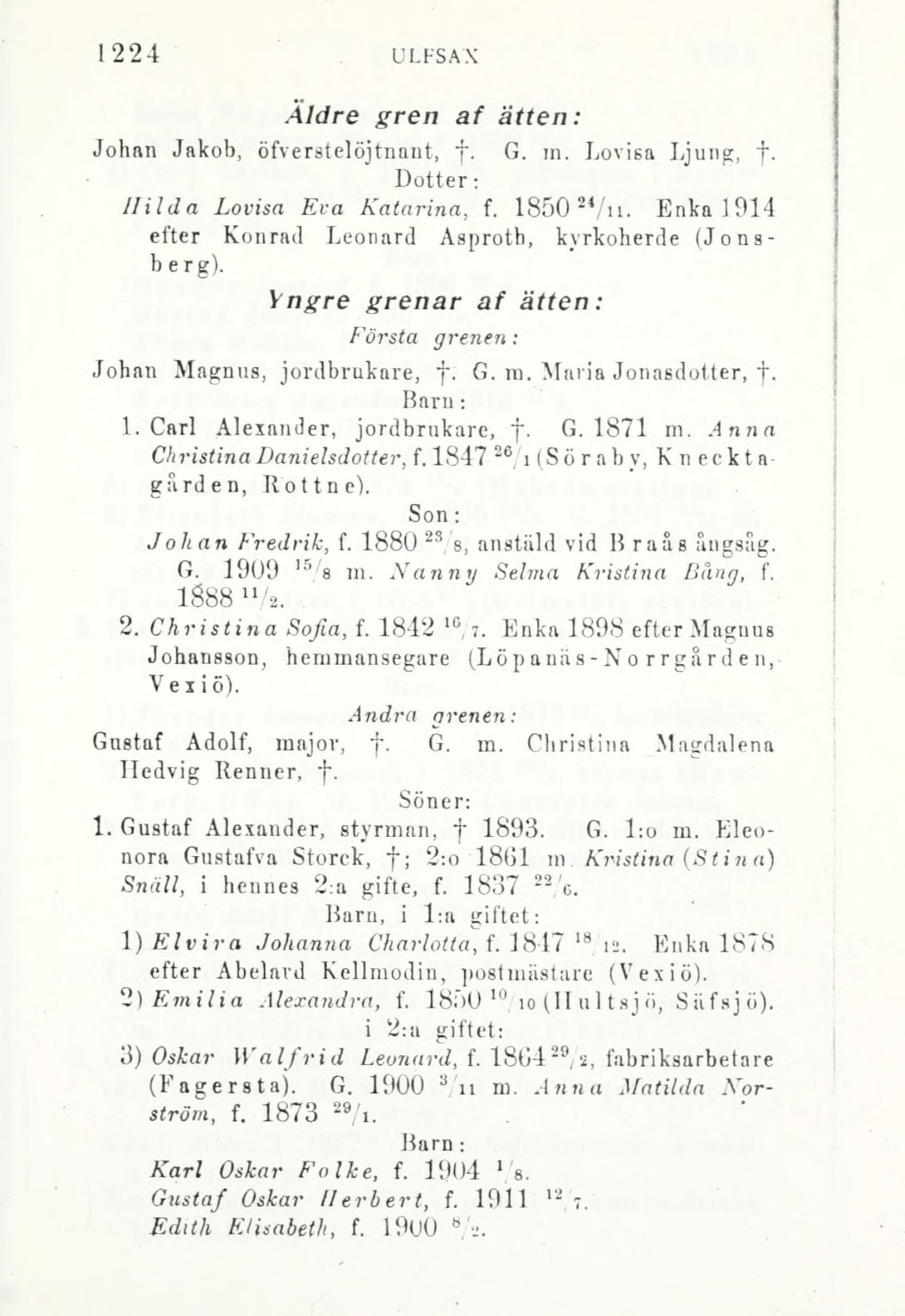 1. Carl Alexander, jordbrukare, Tf. G. 1871 m. Anna