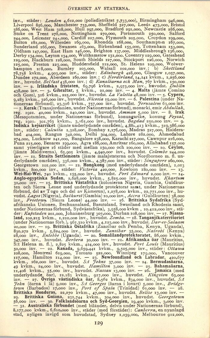 inv. — 2. Irländska fristaten, 69,796 kvkm., 2,973,000 inv., huvudst. Dublin