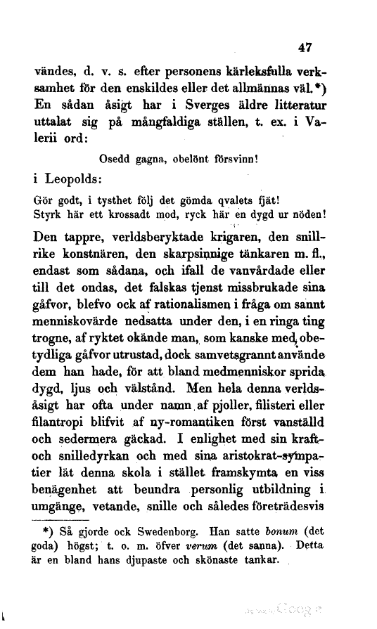 *) Så gjorde ock Swedenborg. Han satte bonum (det