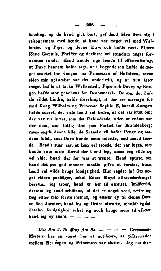 mellem Hertzogeo og Princessen var sluttet. Jeg har der-