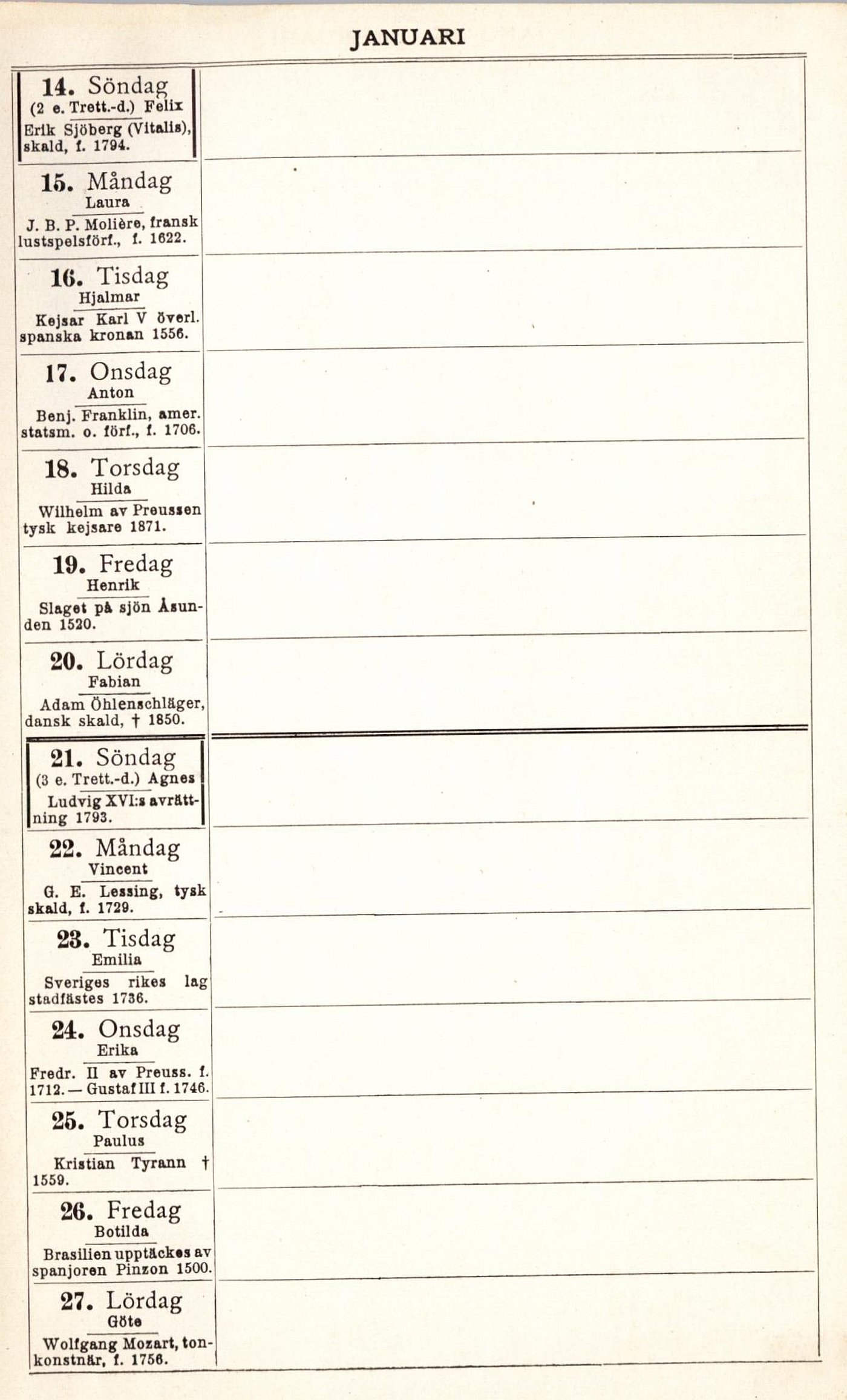 17. Onsdag Anton Benj. Franklin, amer. statsm. o. förf., f. 1706.