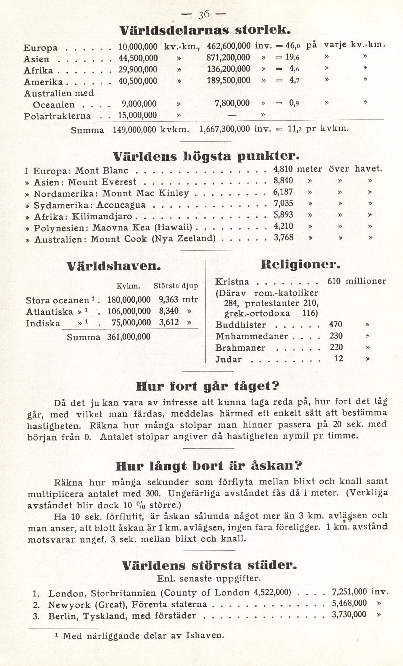 Europa............ 10,000,000 kv.-km., 462,600,000 inv. - 46,o på varje kv.-km.