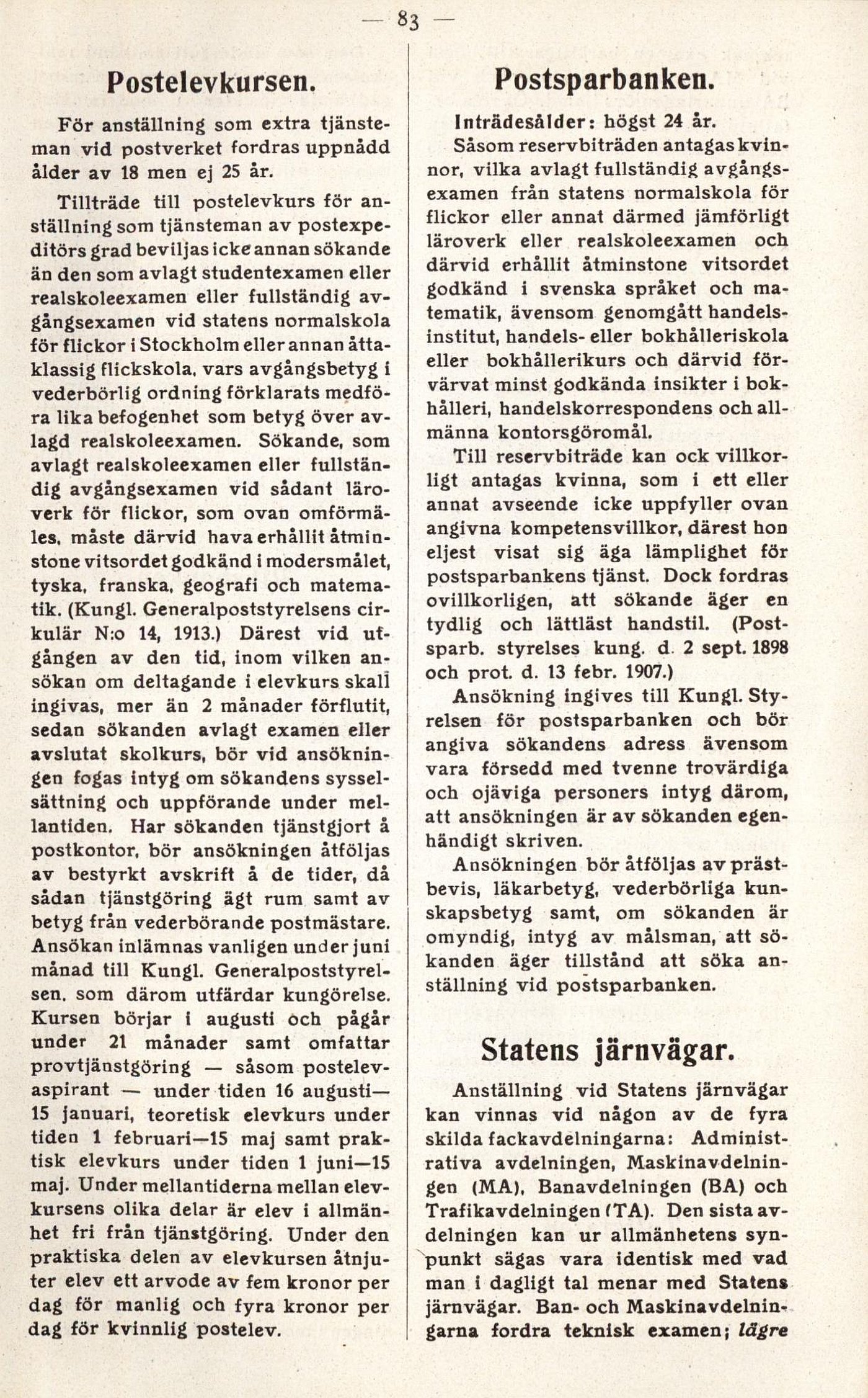 Full resolution (JPEG) - On this page / på denna sida - Vad skall man bli? - Postelevkursen - Postsparbanken - Statens järnvägar