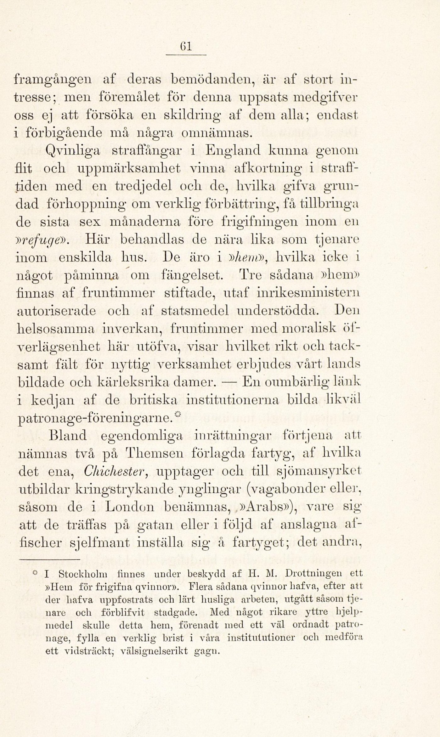 »Hem för frigifna qvinnor». Flera sådana qvinnor hafva, efter att