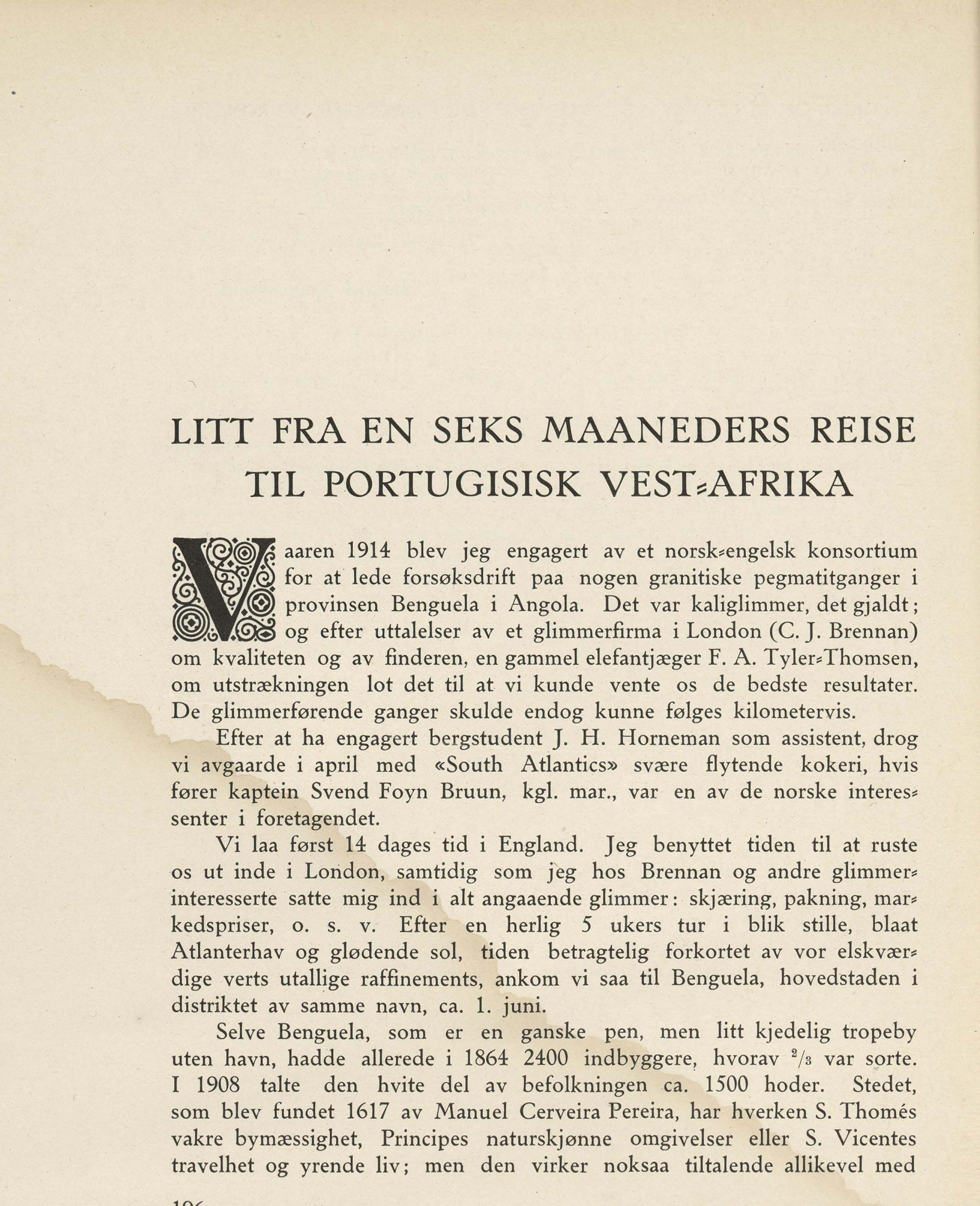 aaren 1914 blev jeg engagert av et norsk*engelsk konsortium