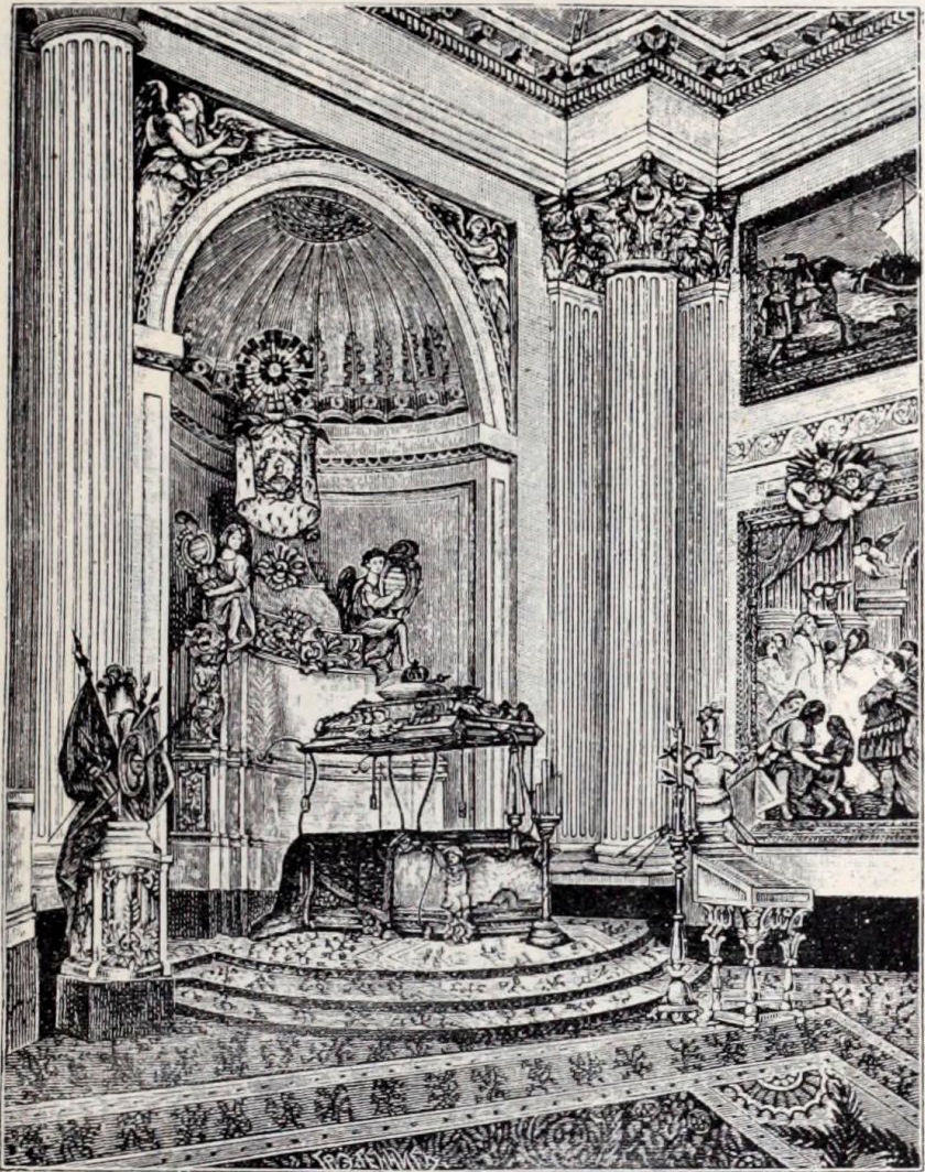 har en viss militärprägel genom de marmortaflor, som man slagit upp