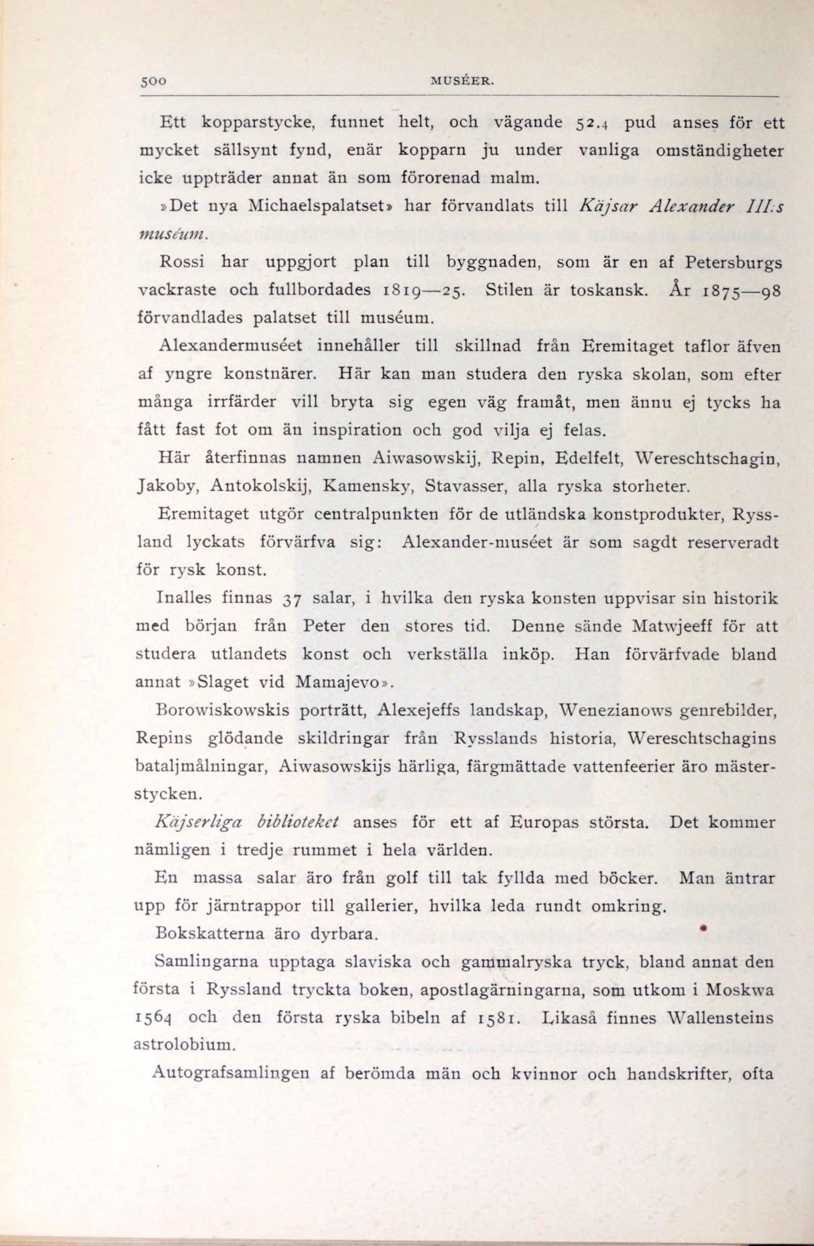 Alexandermuséet innehåller till skillnad från Eremitaget taflor äfven