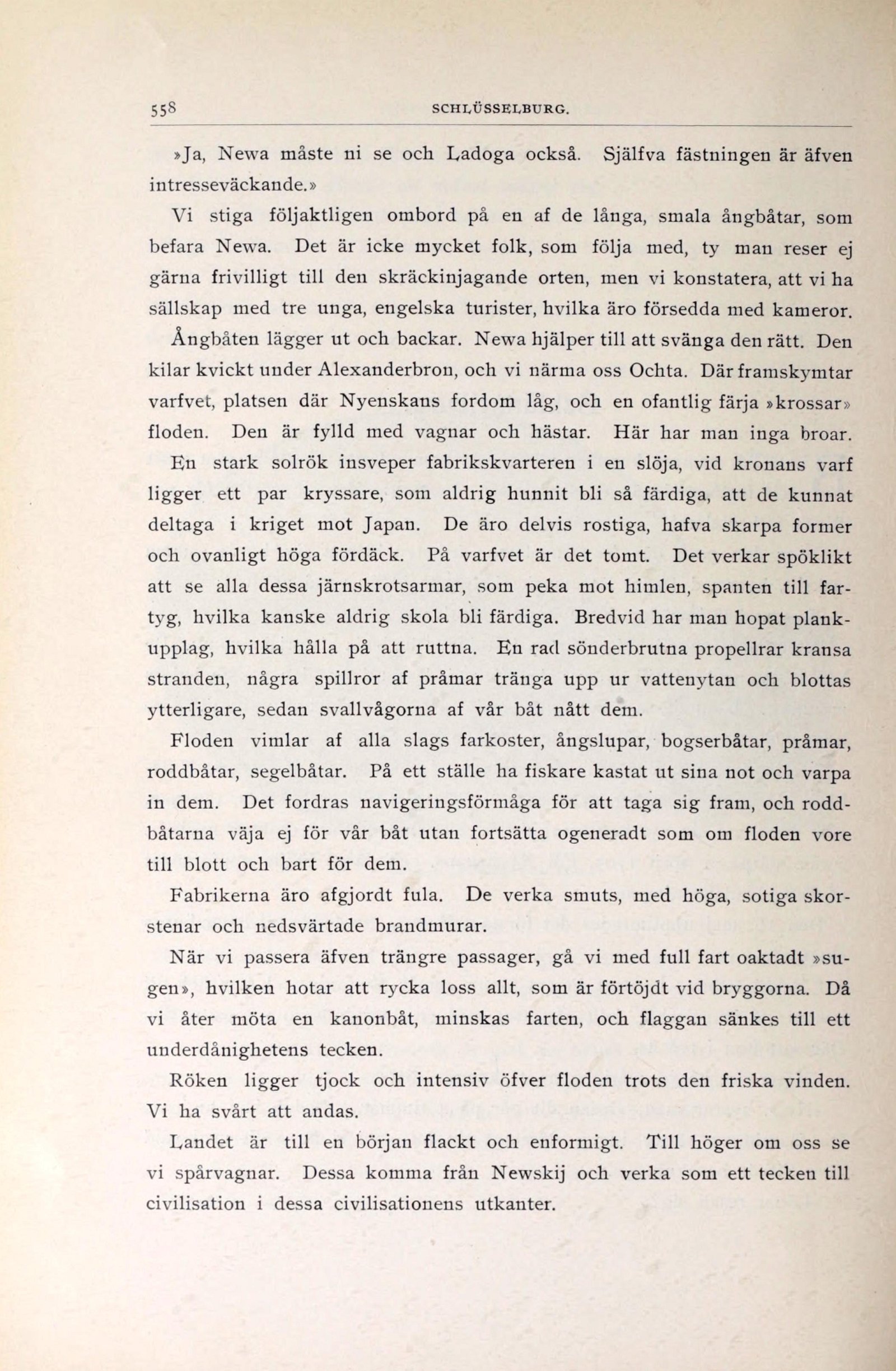 »Ja, Newa måste ni se och Ladoga också. Själfva fästningen är äfven