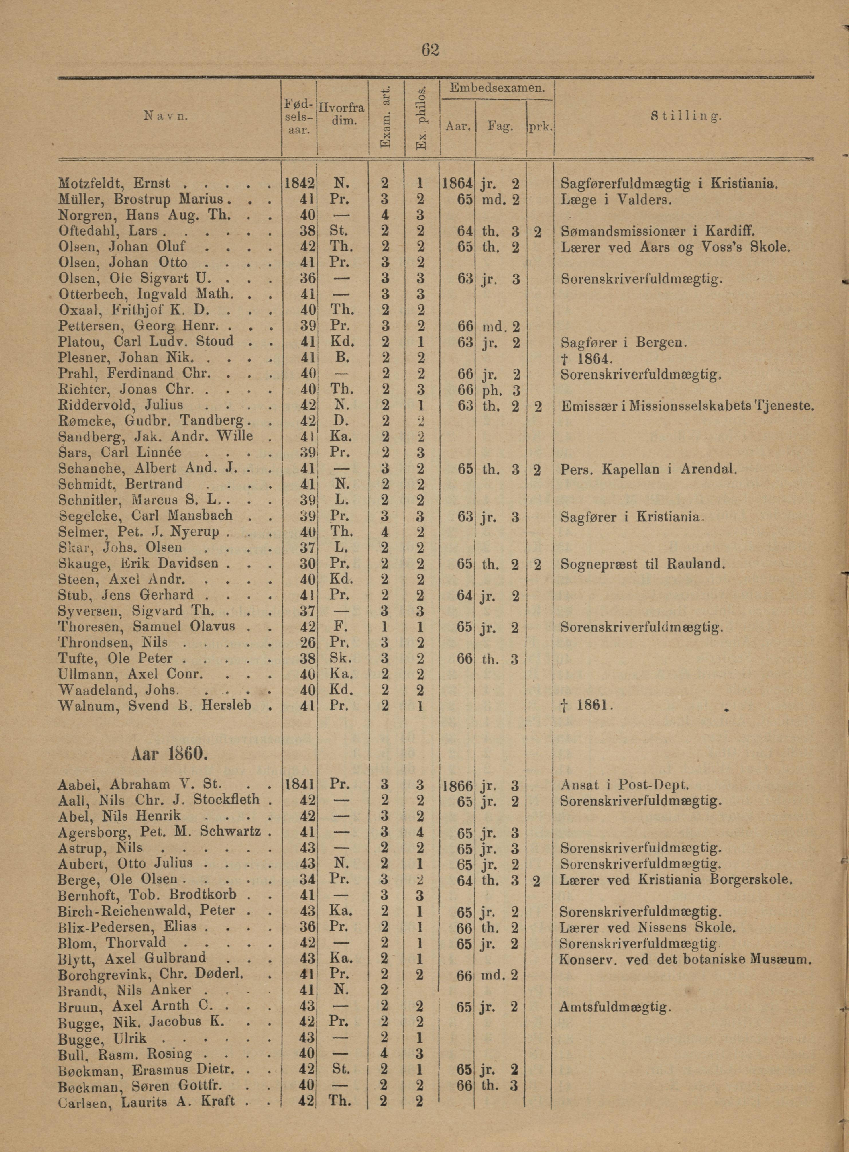 Motzfeldt, Ernst..........1842 N. 2 1 1864 jr. 2 : Sagførerfuldmægtig i Kristiania.