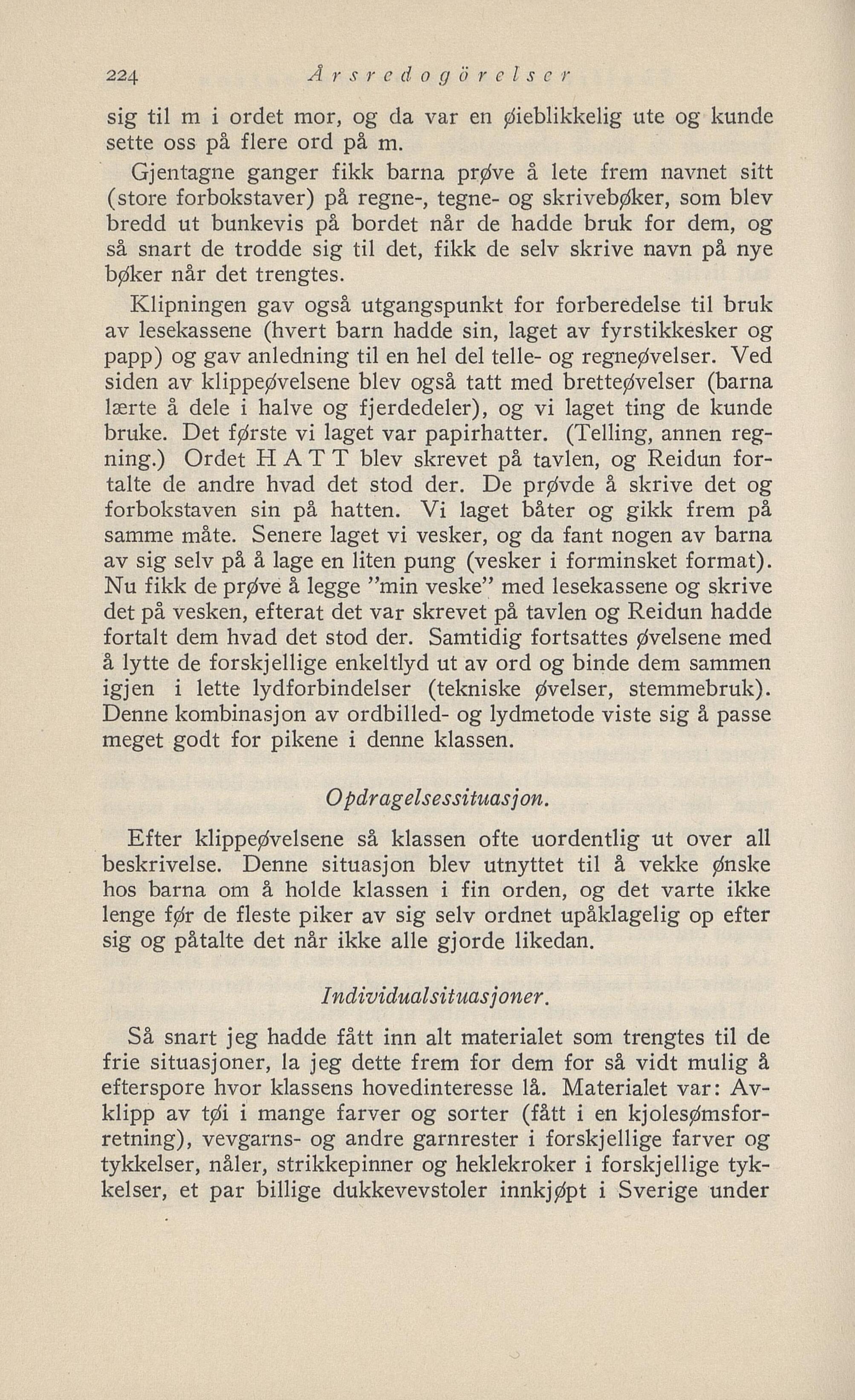 Full resolution (JPEG) - On this page / på denna sida - Tredje delen. Ur aktivitetspedagogikens praktik - 1. Årsredogörelser - A. Årsredogörelser över skollivets hela organisation (typ B) - a) 1ste klasse. Av Dorothea Trætteberg