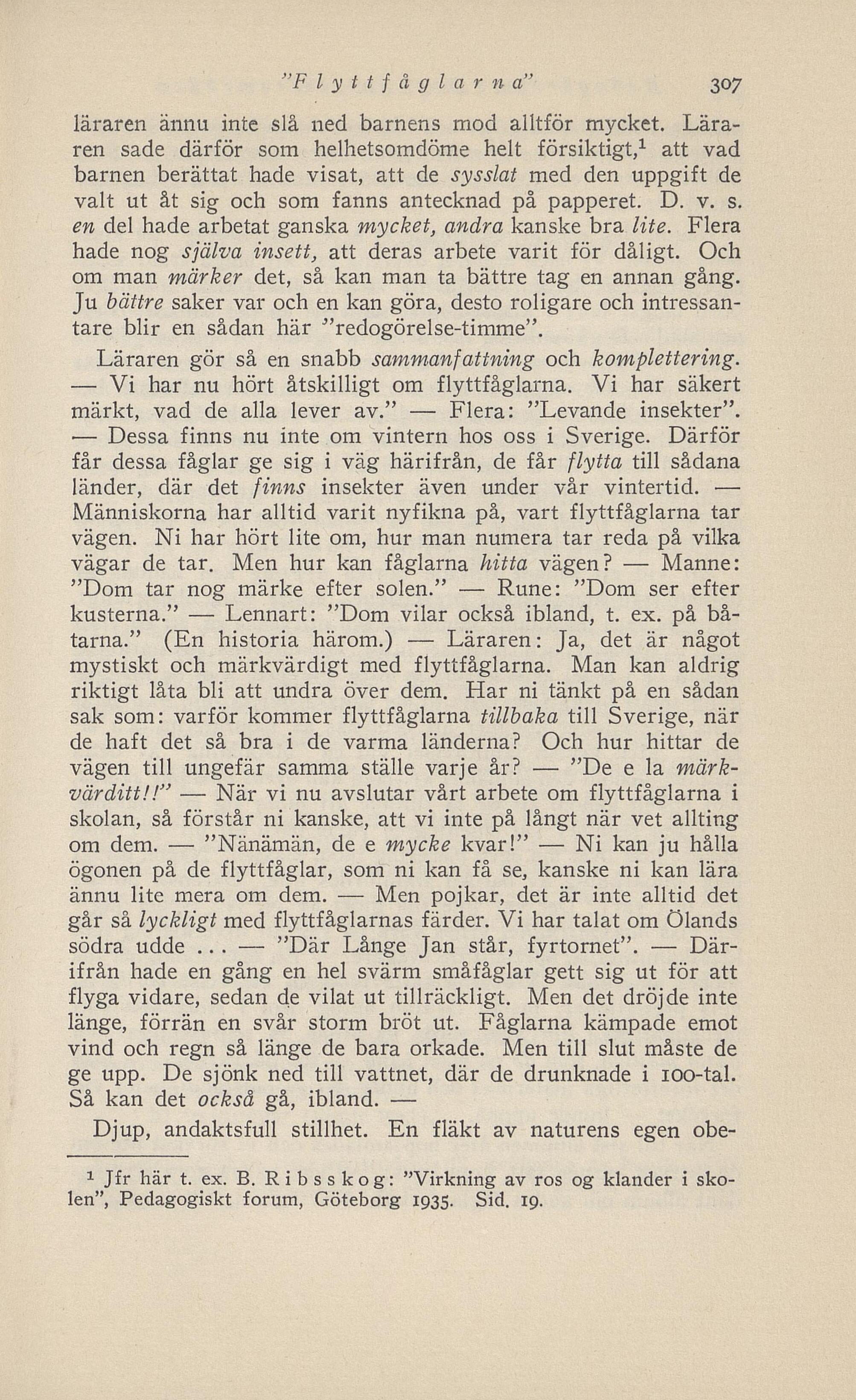 Full resolution (JPEG) - On this page / på denna sida - Tredje delen. Ur aktivitetspedagogikens praktik - 2. Redogörelser över utförda intresseområden - A. Ett intresseområde utfört av tre olika lärare över samma tema: "Flyttfåglarna" - Försök I. Av Max Glanzelius