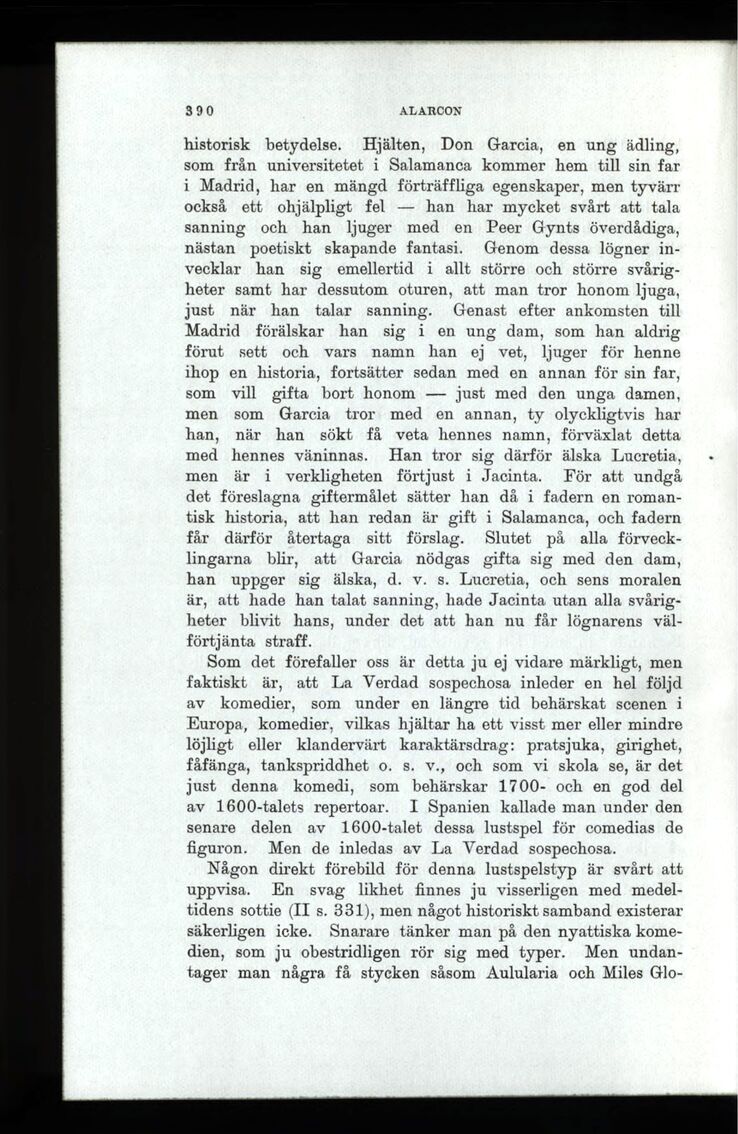litteraturhistorisk betydelse. Hjälten, Don Garcia, en ung ädling,