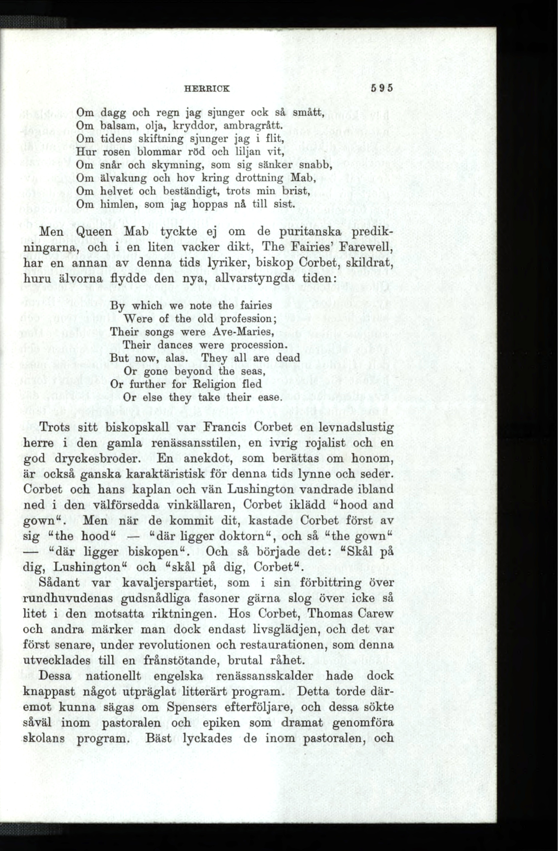 litet i den motsatta riktningen. Hos Corbet, Thomas Carew