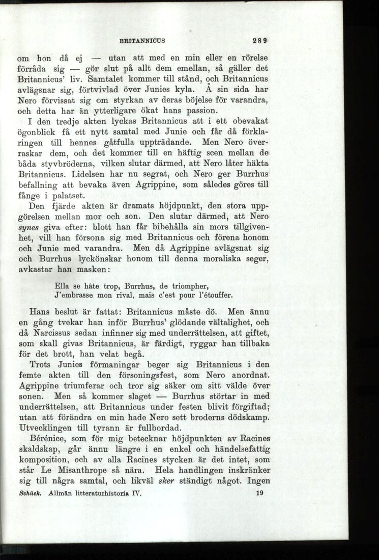 Britannicus’ liv. Samtalet kommer till stånd, och Britannicus