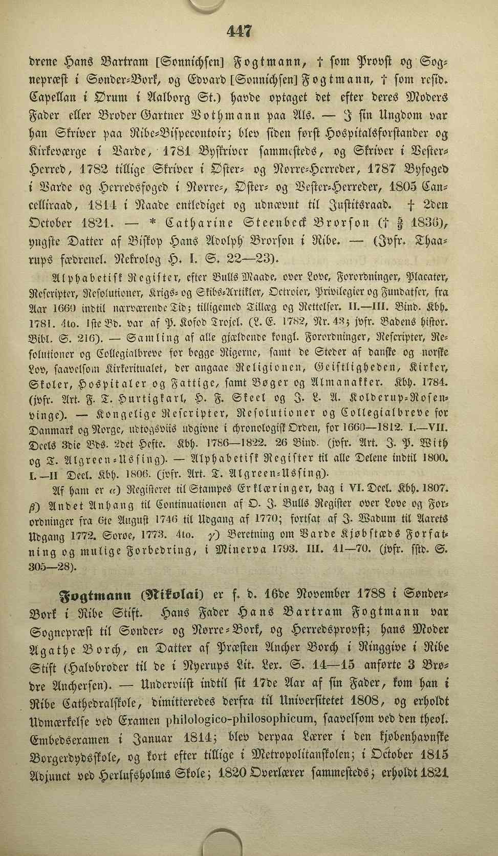 Fogtmann (Nikolai) er f. d. 16de November 1788 i