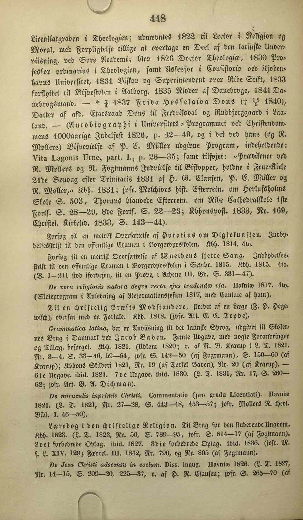 Licentiatgraden i Theologien; udnævntes 1822 til Lector i Rkligion og