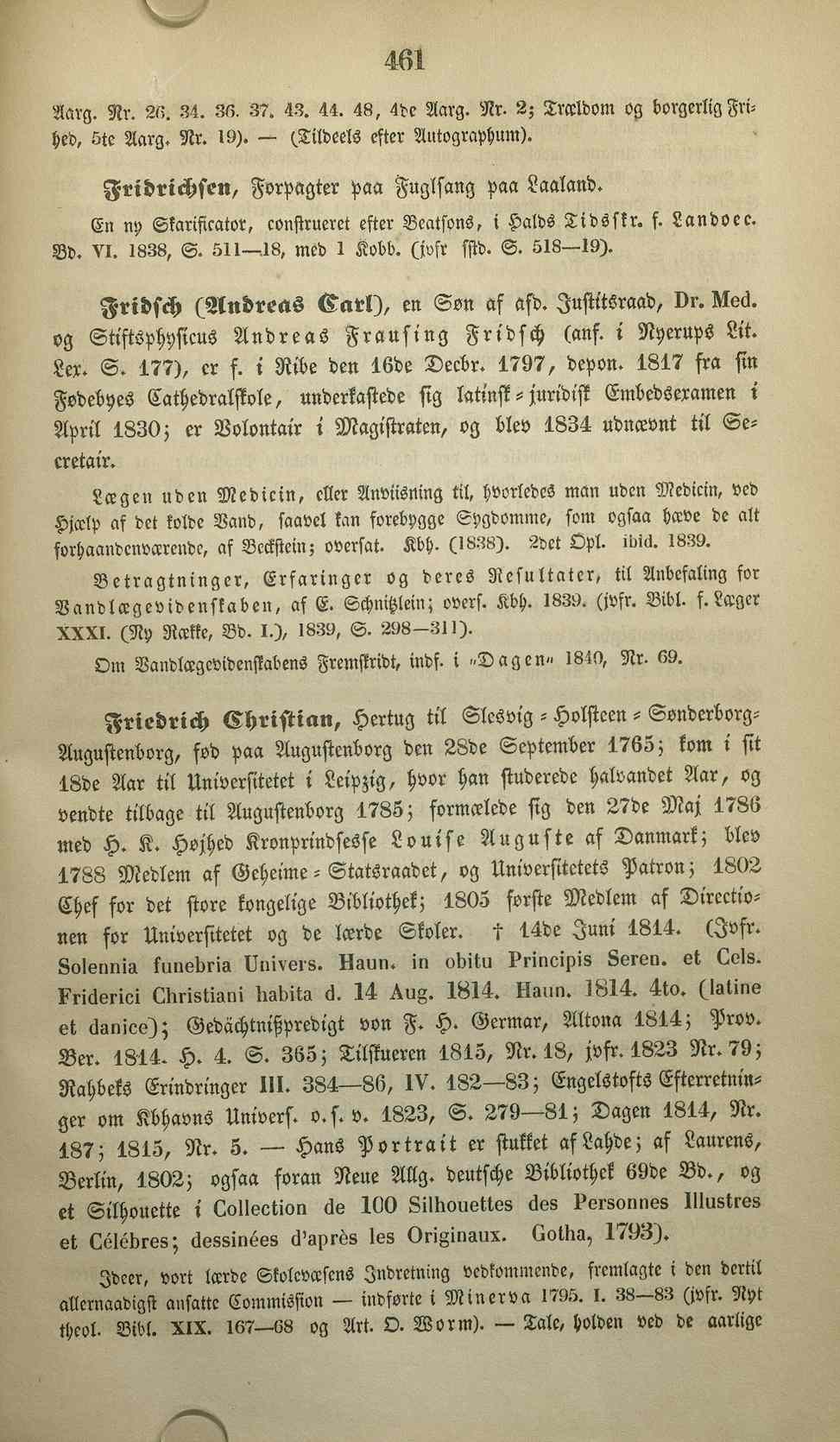 og Stiftsphysicus Andreas Frausing Fridsch (anf. i Nyerups Lit.
