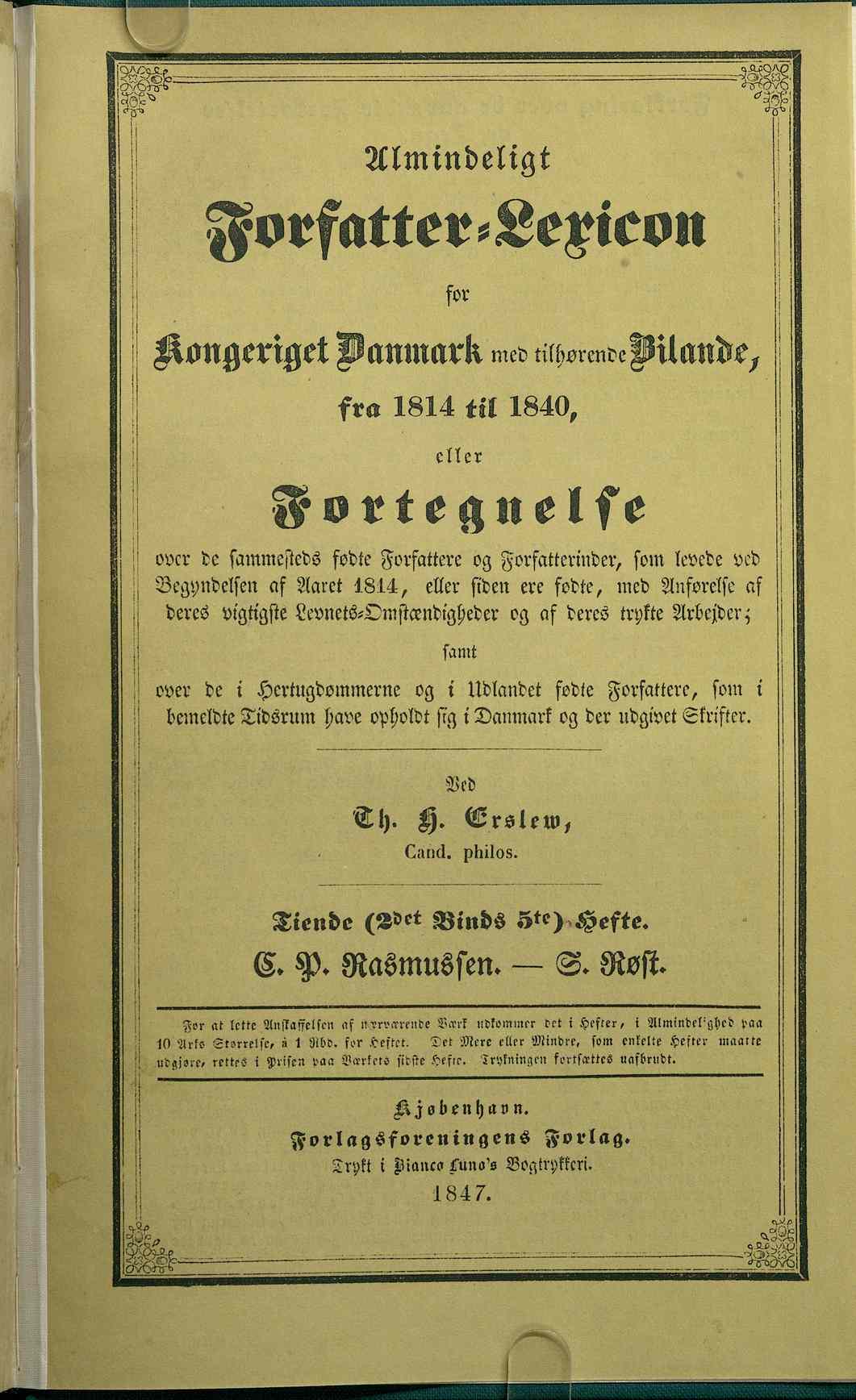 over de sammesteds fodte Forfattere og Forfatterinder, som levede ved