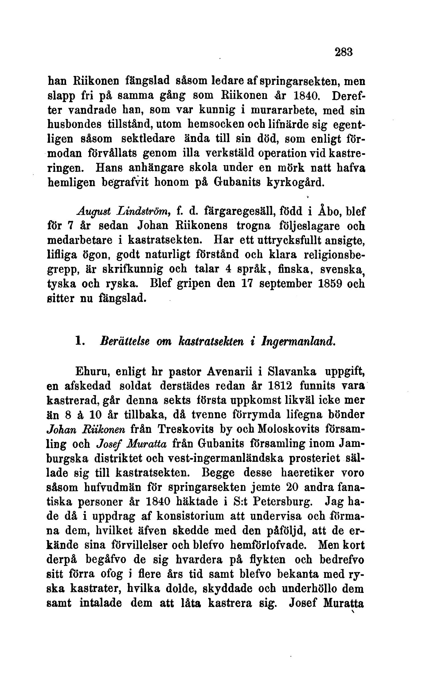 fanatiska personer år 1840 häktade i S:t Petersburg. Jag