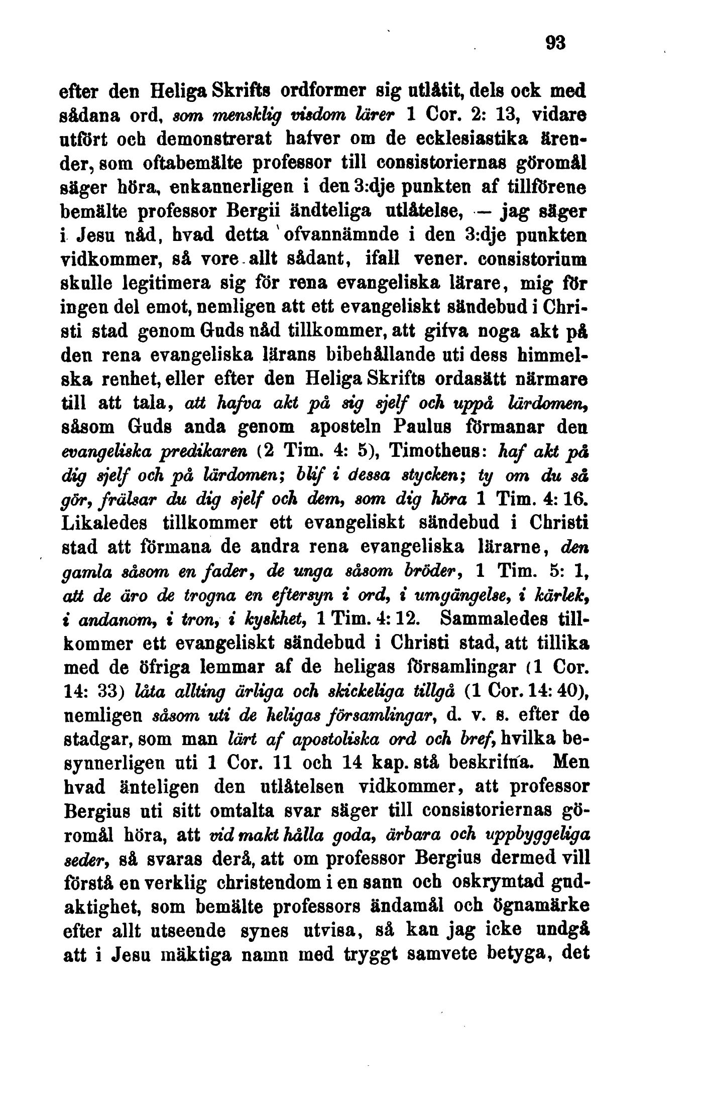 Bergius uti sitt omtalta svar säger till consistoriernas