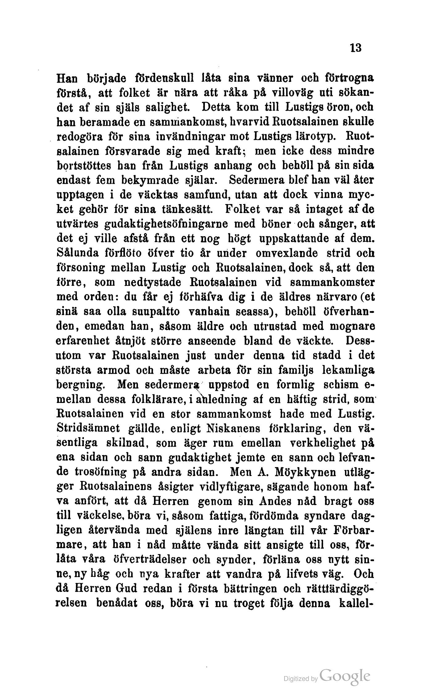 utlägger Ruotsalainens åsigter vidlyftigare, sägande honom