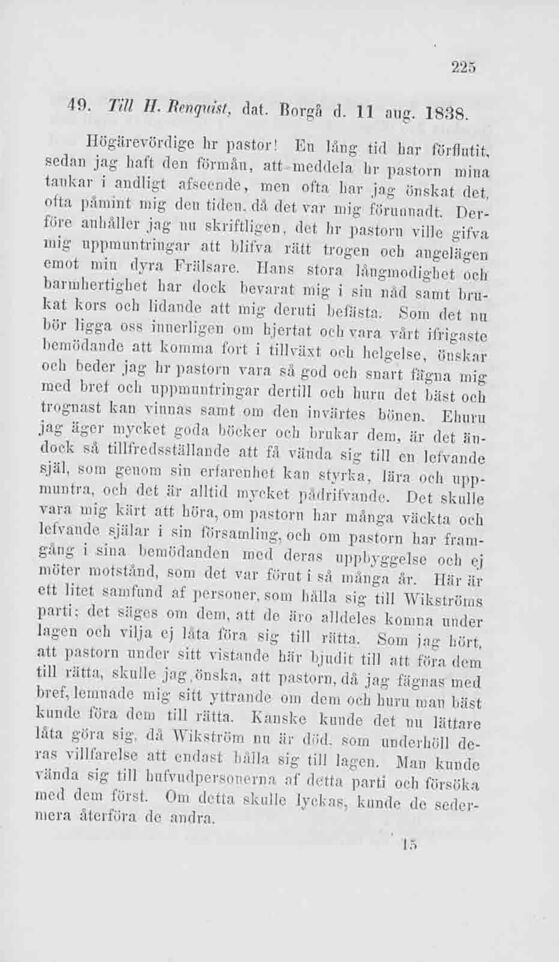 49. Till II. Renquist, dat. Rorgä d. 11 aug. 1838.