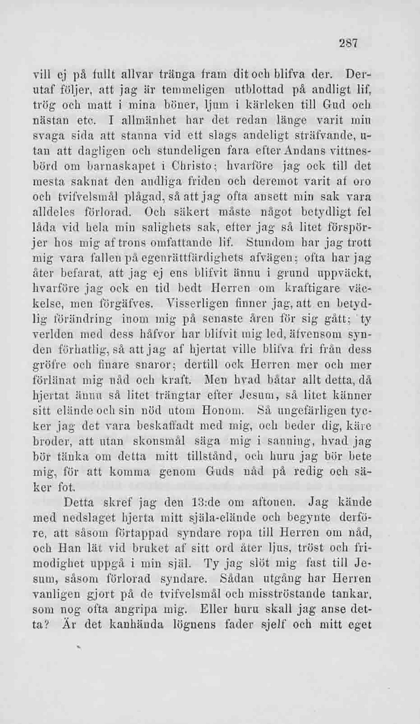 Derutaf följer, att jag sir temmeligen utblottad på andligt lif,