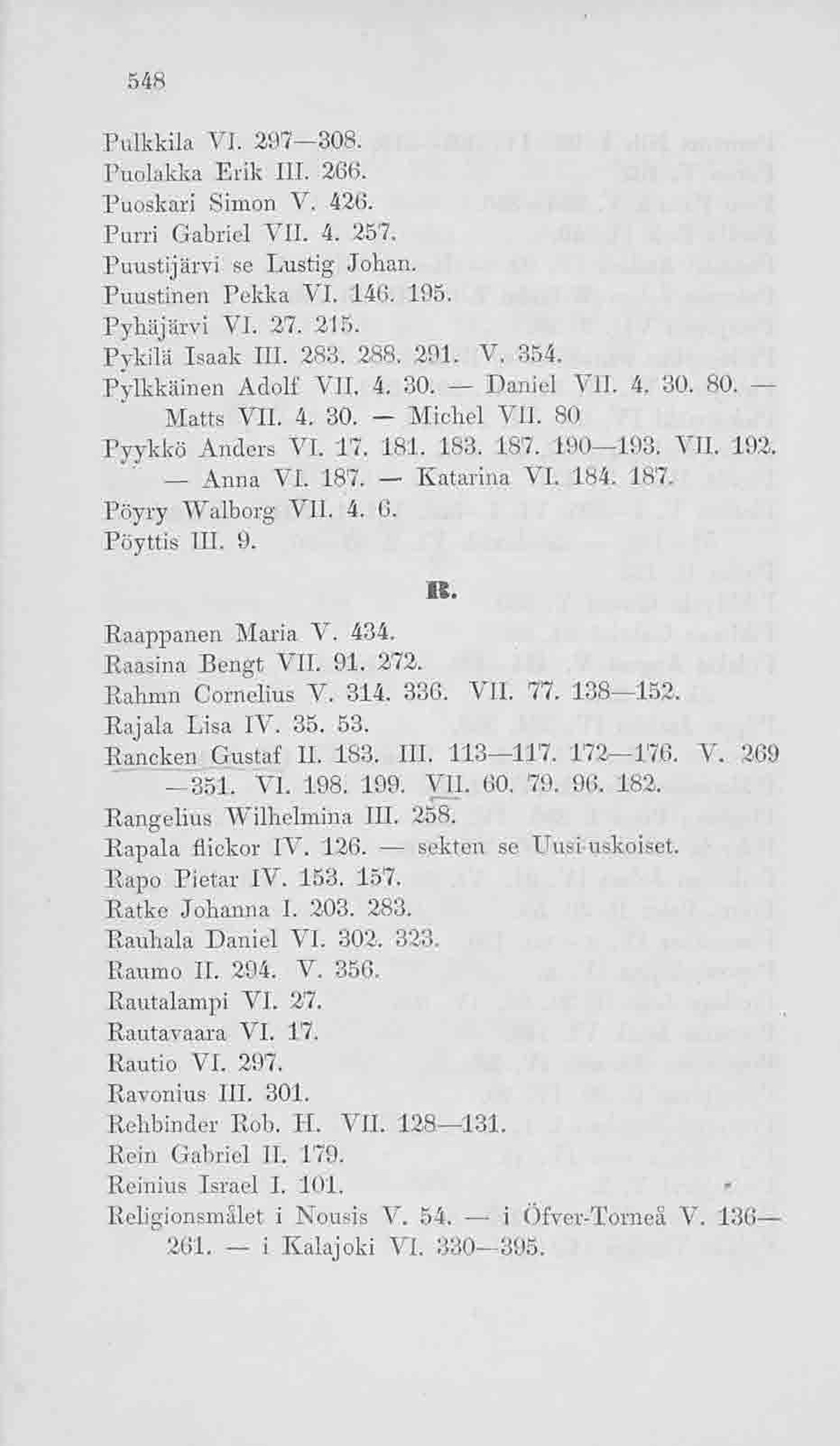 Pyykkö Anders VI. 17. 181. 183. 187. 190—193. VII. 192.