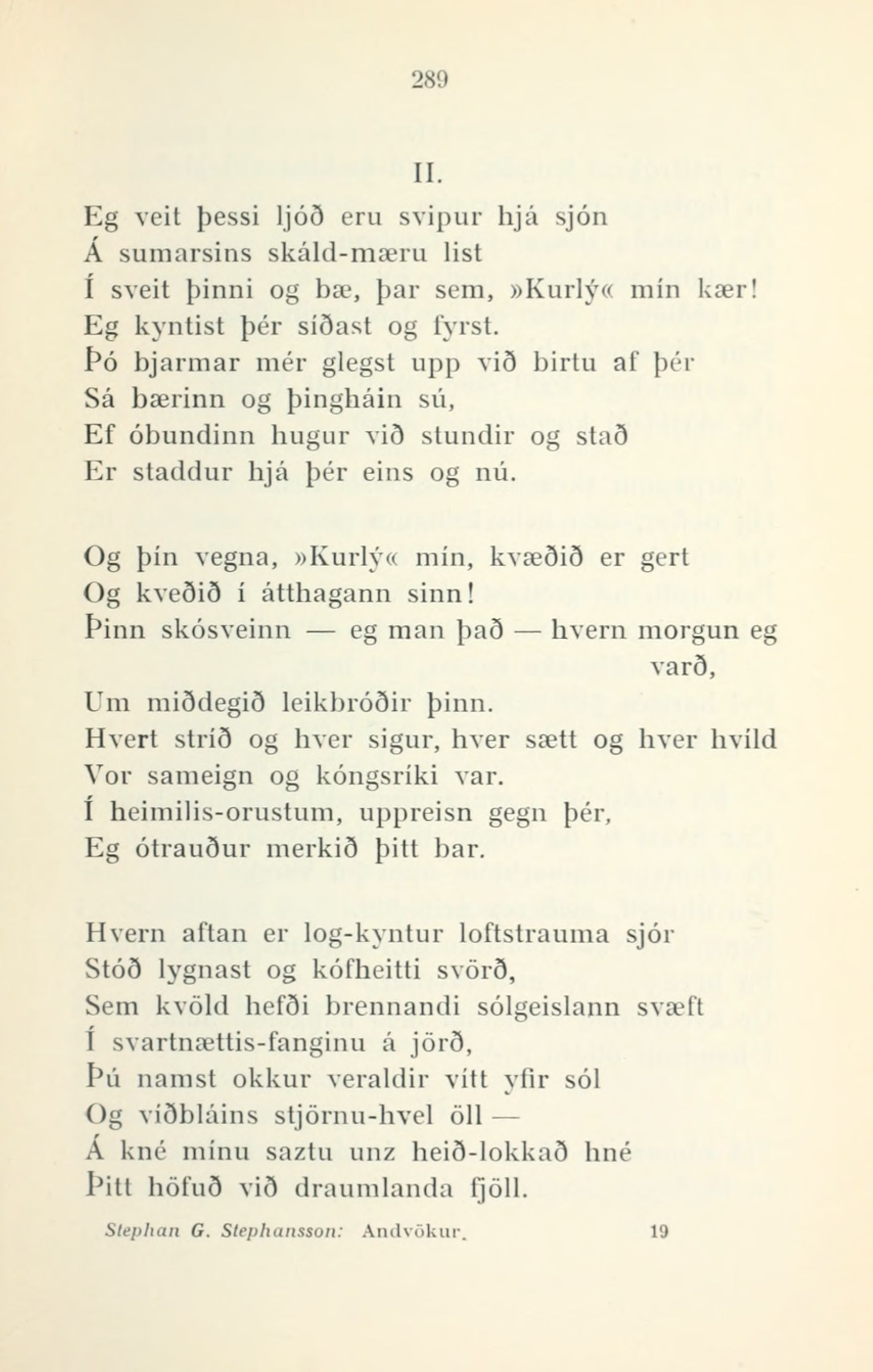 Og pin vegna, »Kurl}7« min, kvæôiô er gert